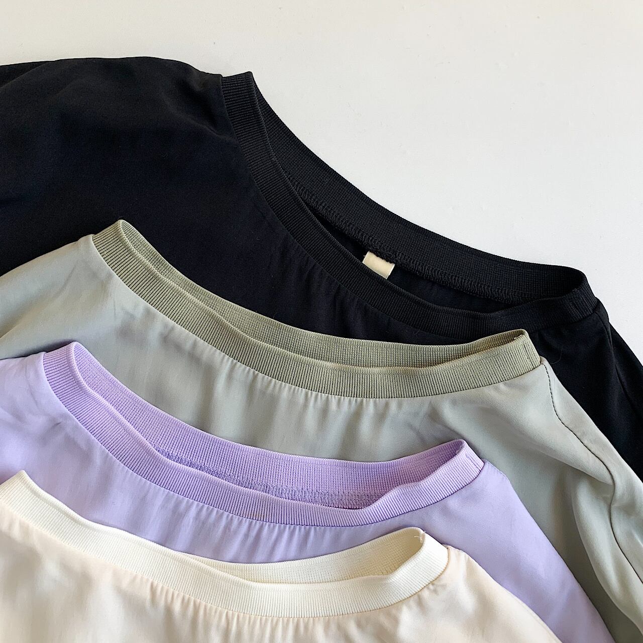 リブをドッキングさせたプルオーバータイプのブラウスです。