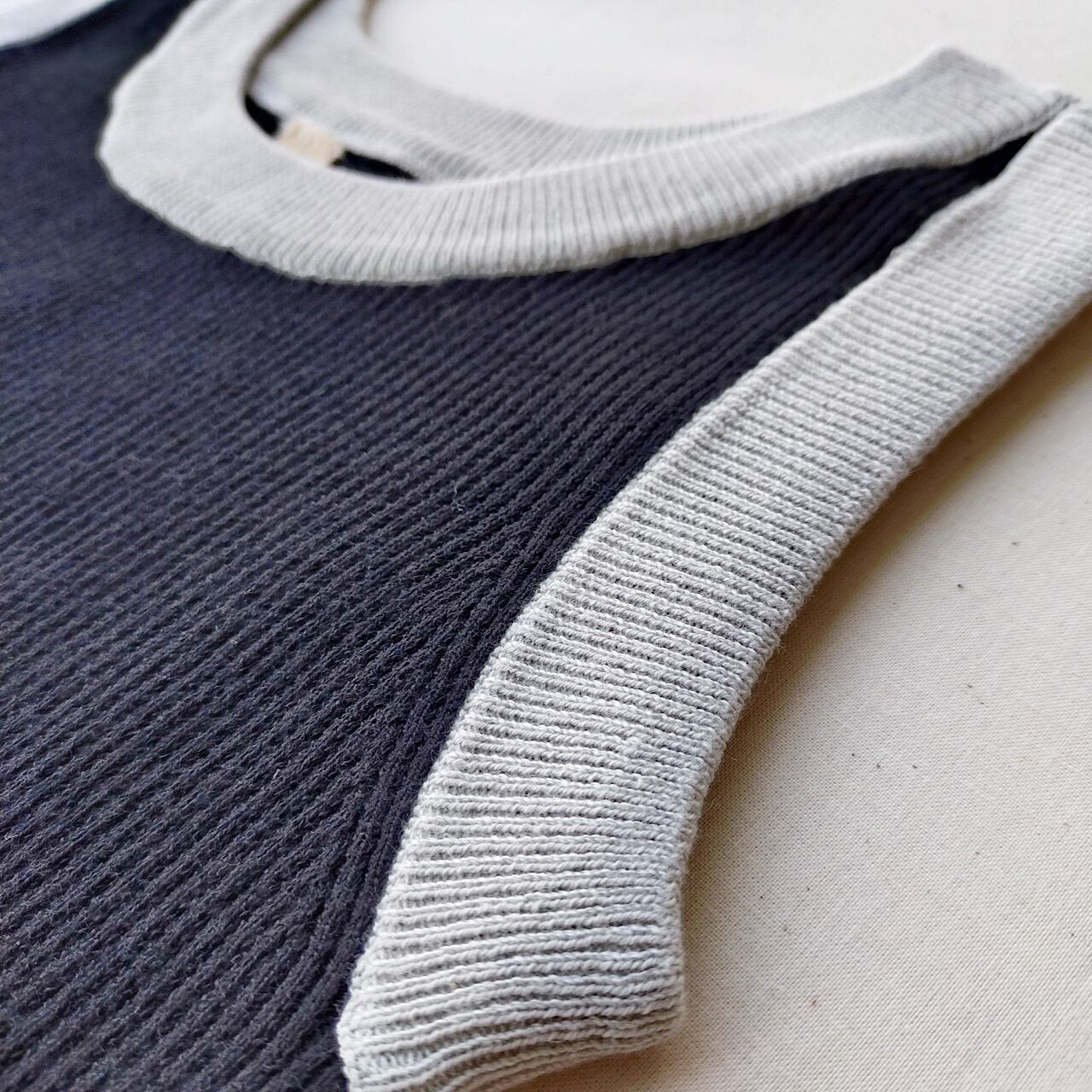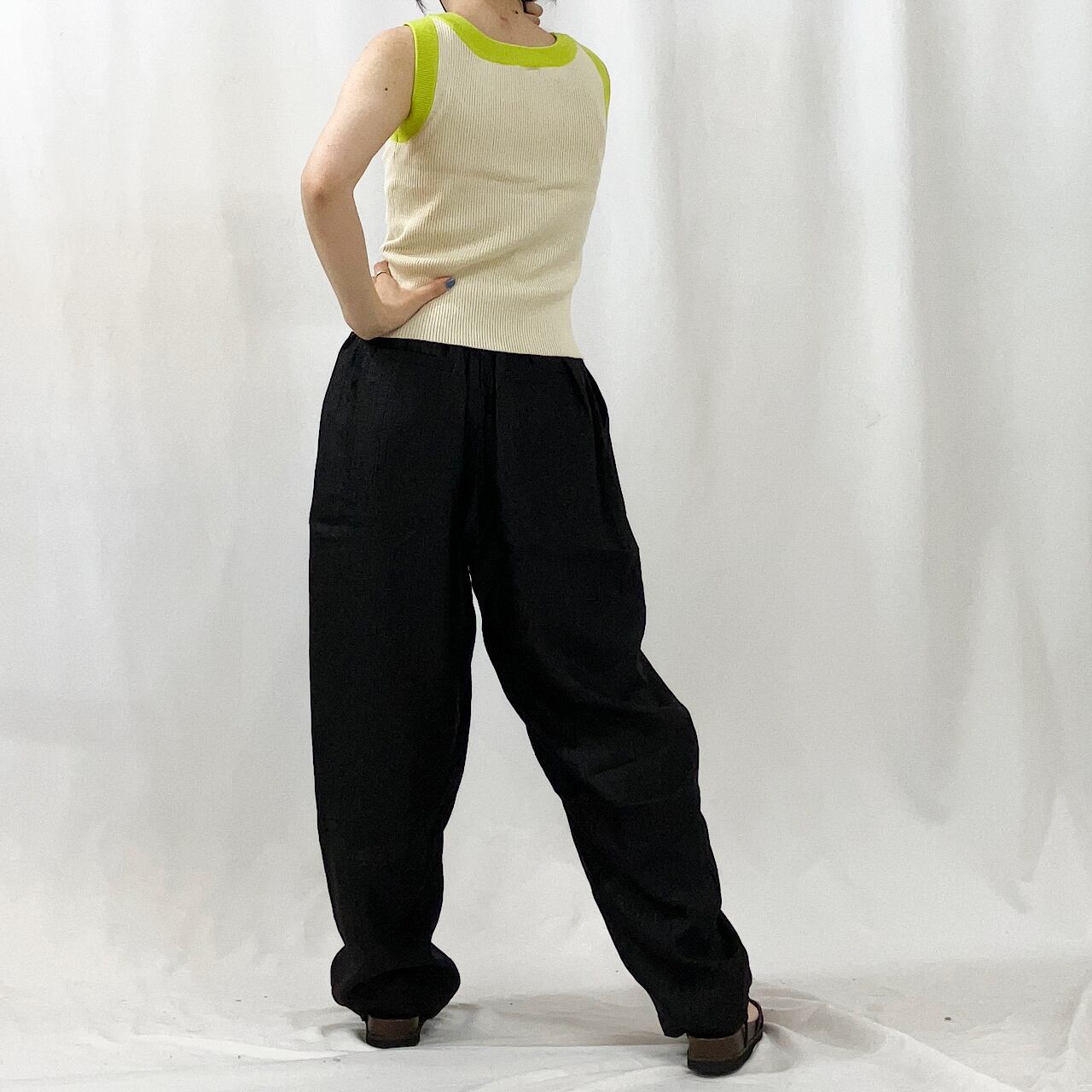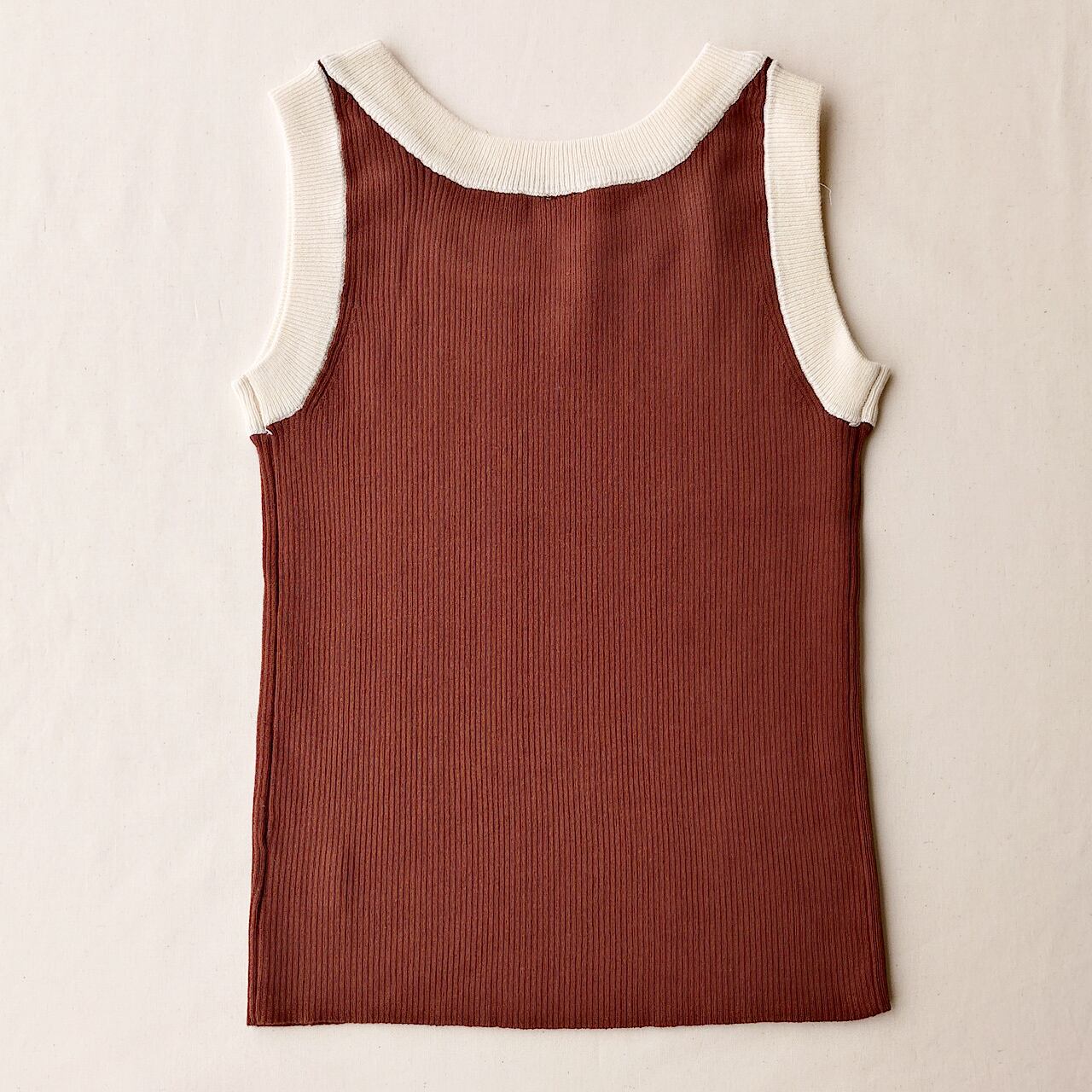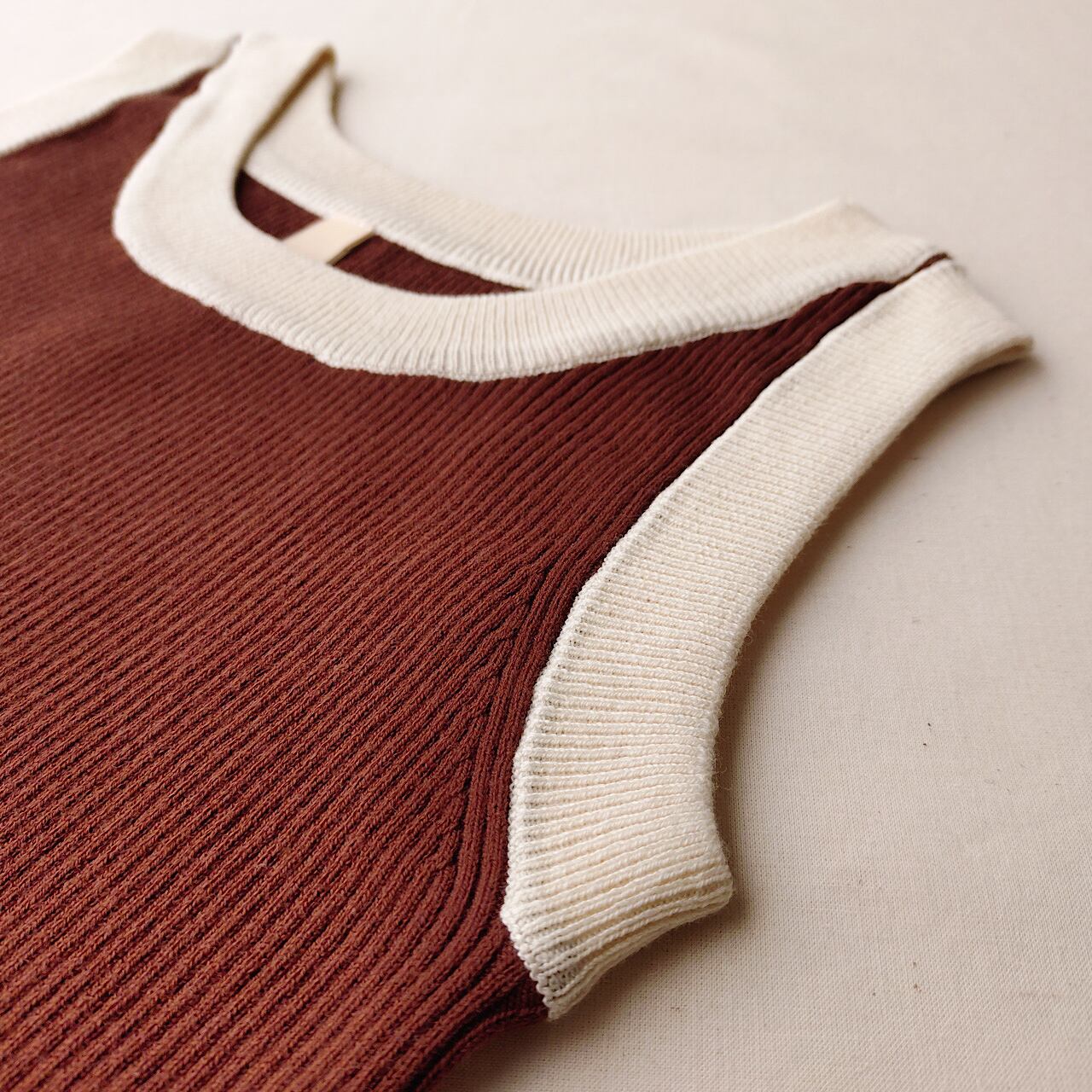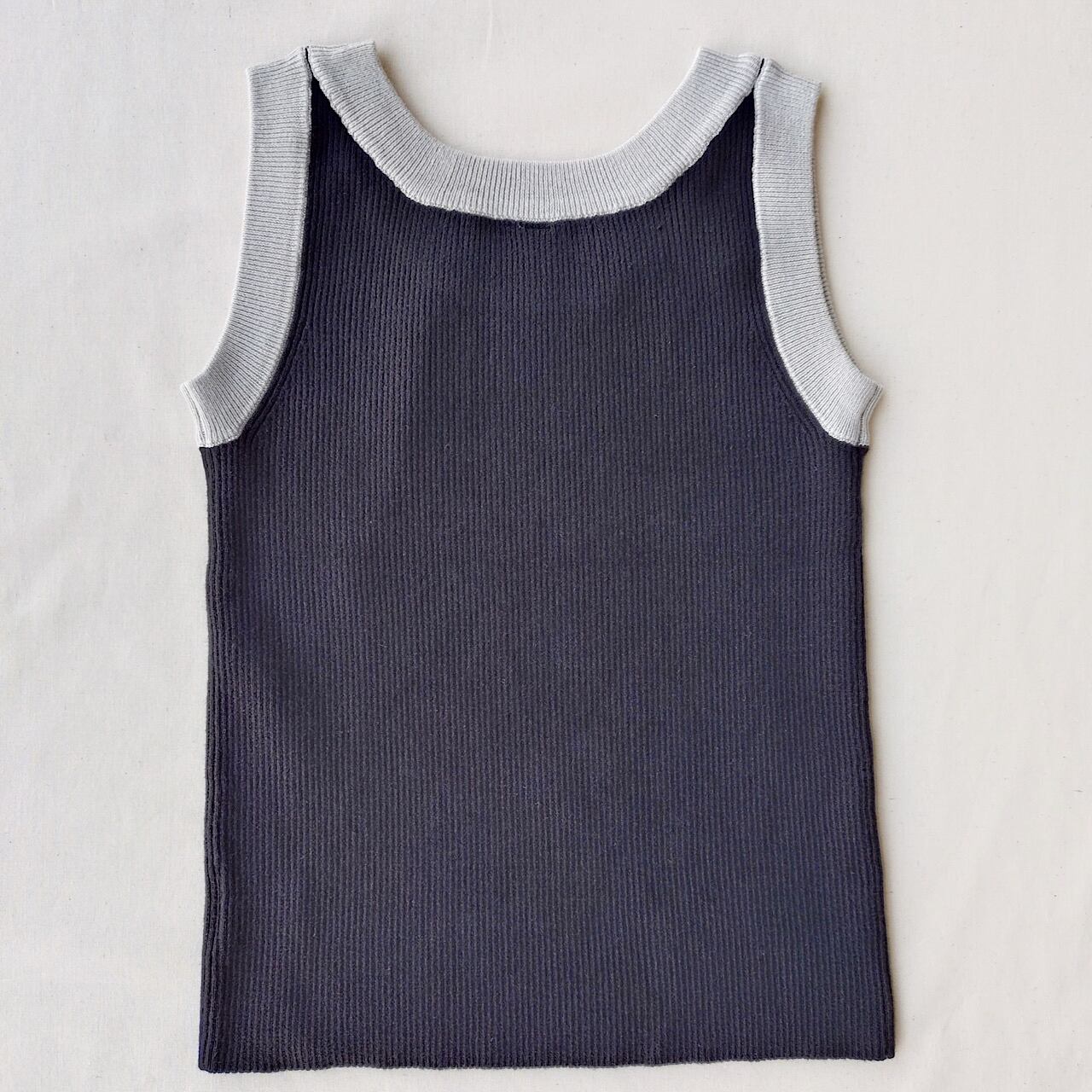 配色バインダーがアクセントになった、トレンド感満載のクロップド丈リブニットタンクトップが登場です。