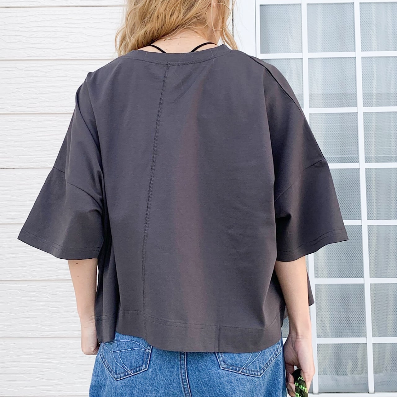 ボックス型のシルエットで、すっきりとした着丈が特徴です。