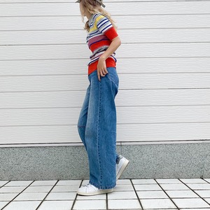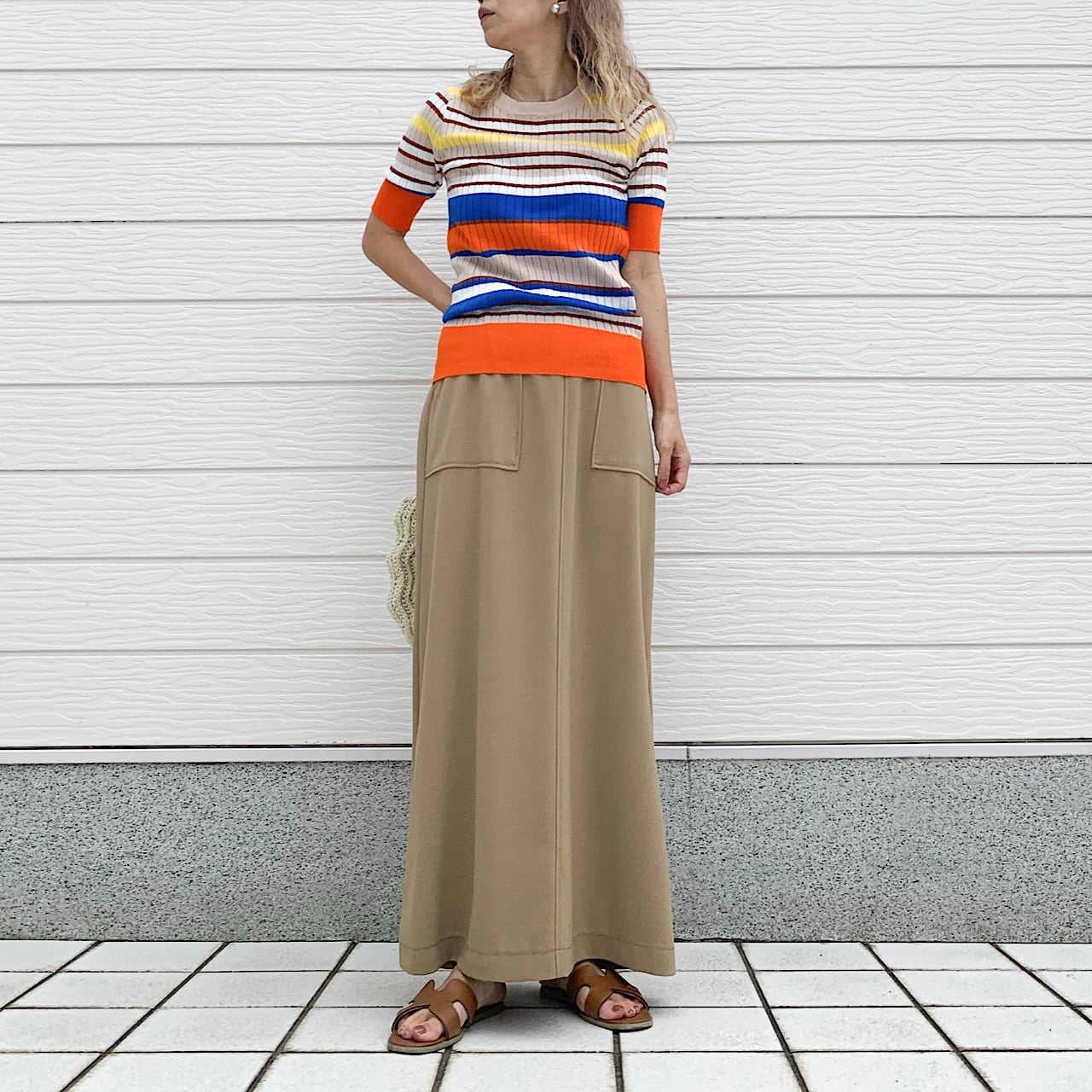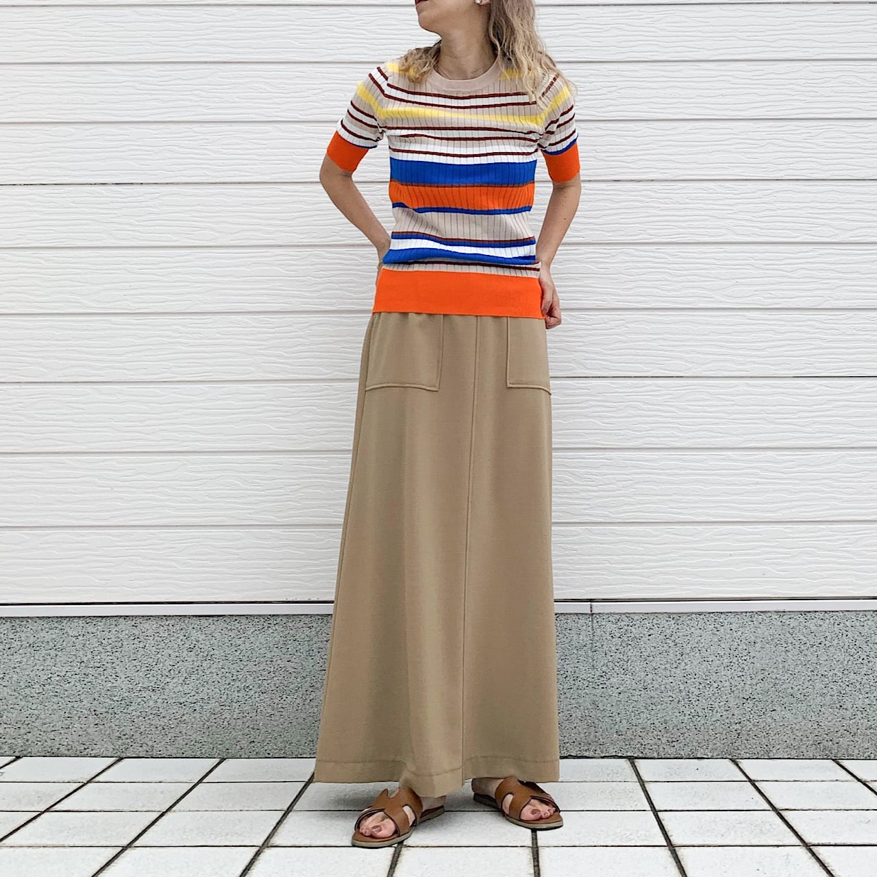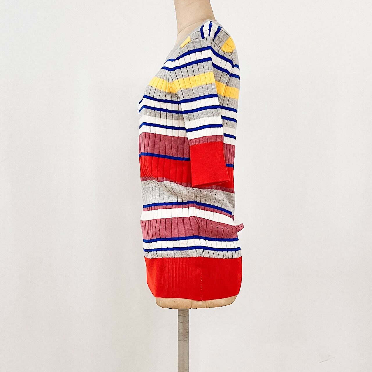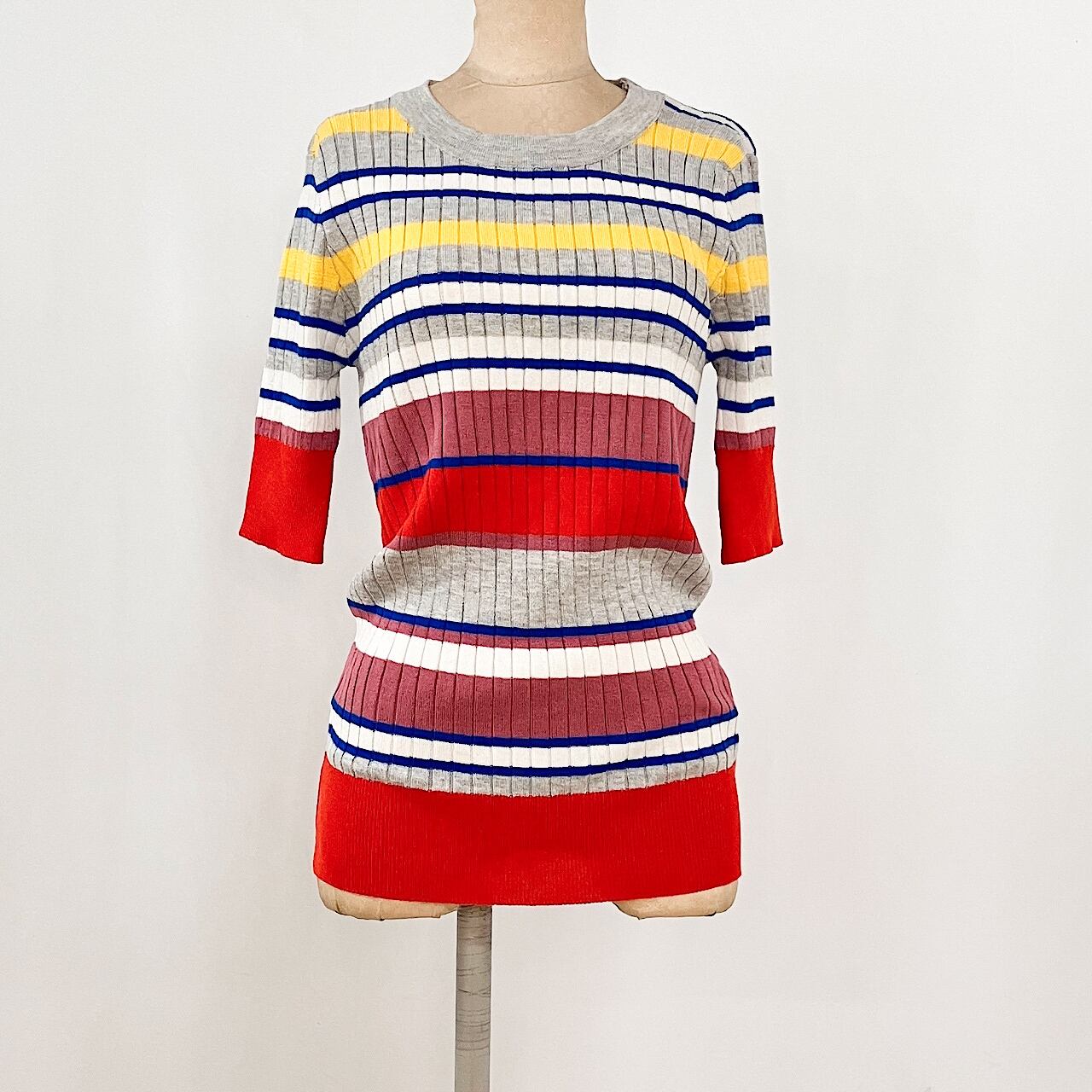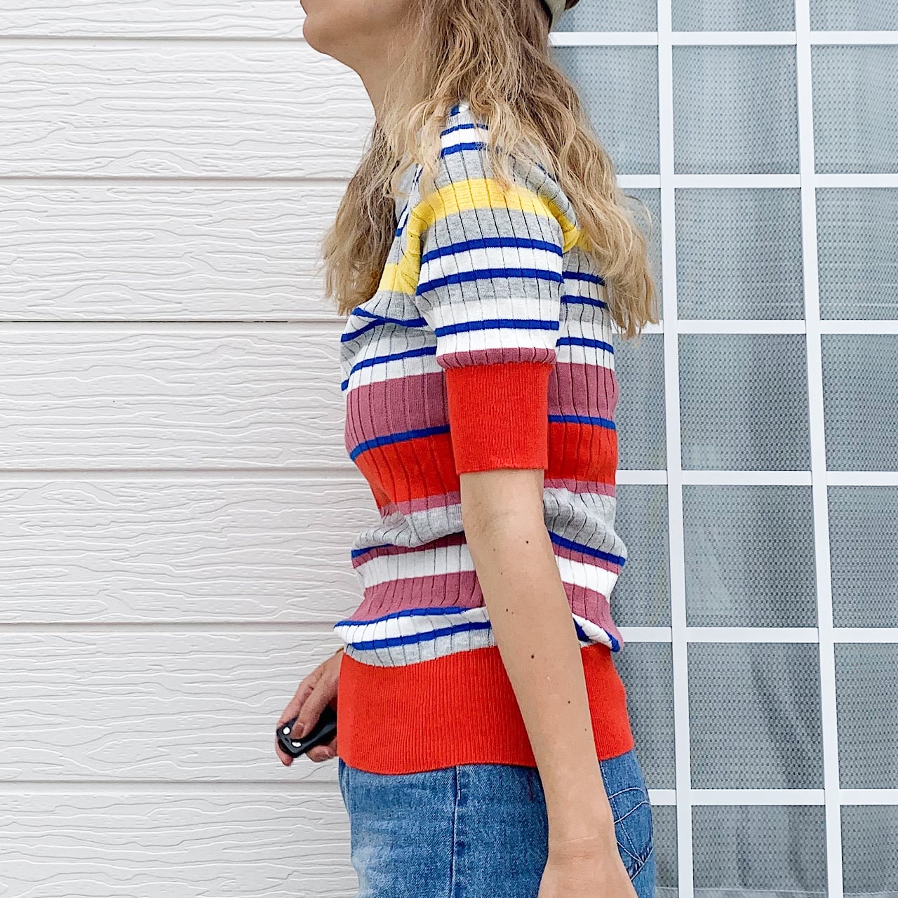 カラーの組み合わせが可愛い、リブ半袖ニットです。