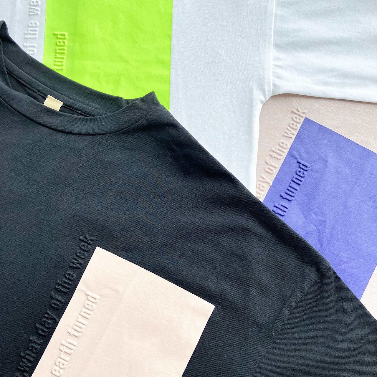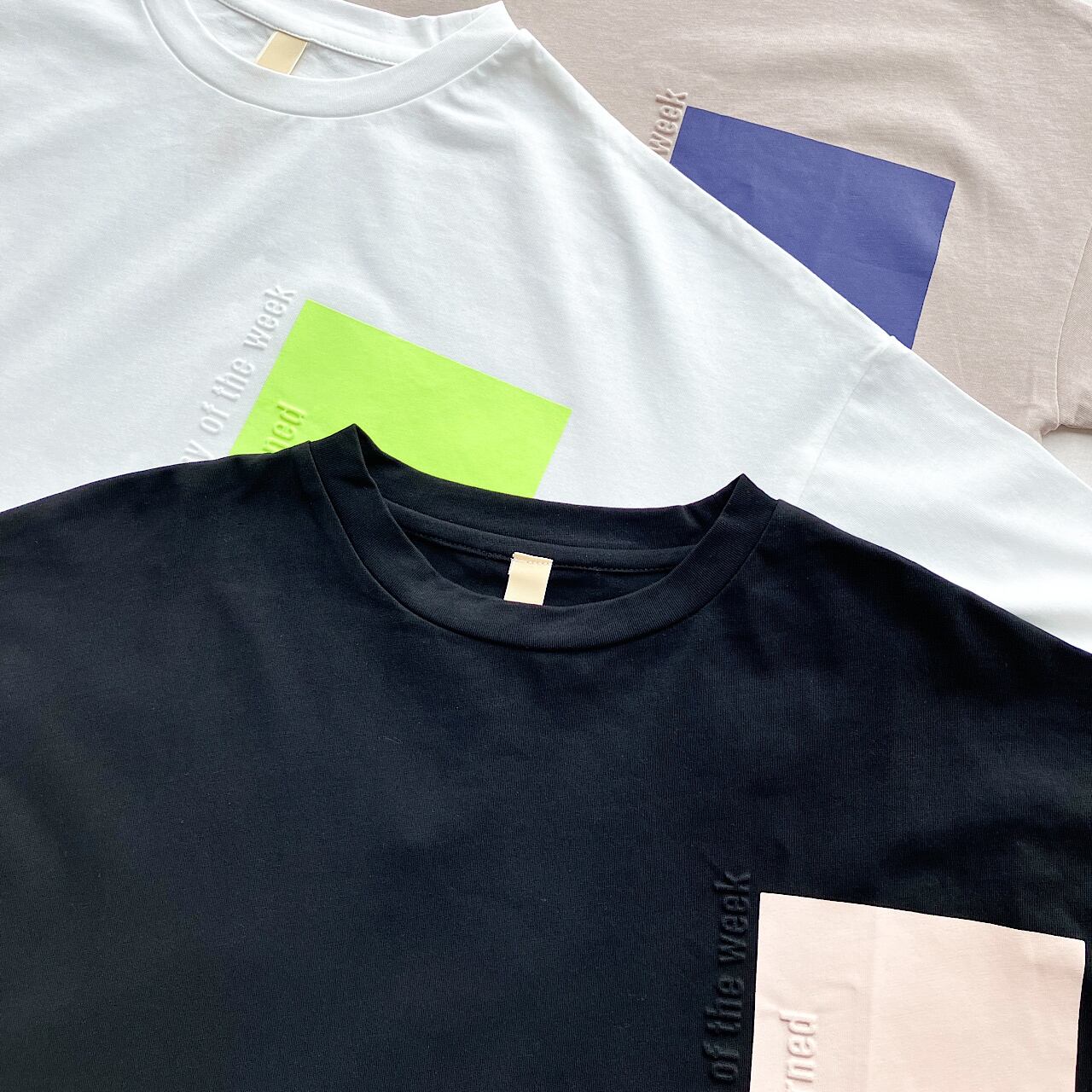 ポケットのように入れたカラープリントとエンボス加工されたロゴがアクセントとなり、シンプルながらも遊び心を感じさせるTシャツに仕上げました。