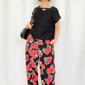 軽やかで個性的なレーヨンスラブネックベルトブラウスです。