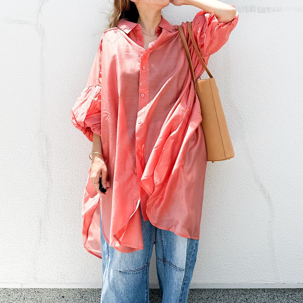 光沢が美しいシアー素材を使用したバルーンスリーブオーバーシャツです。