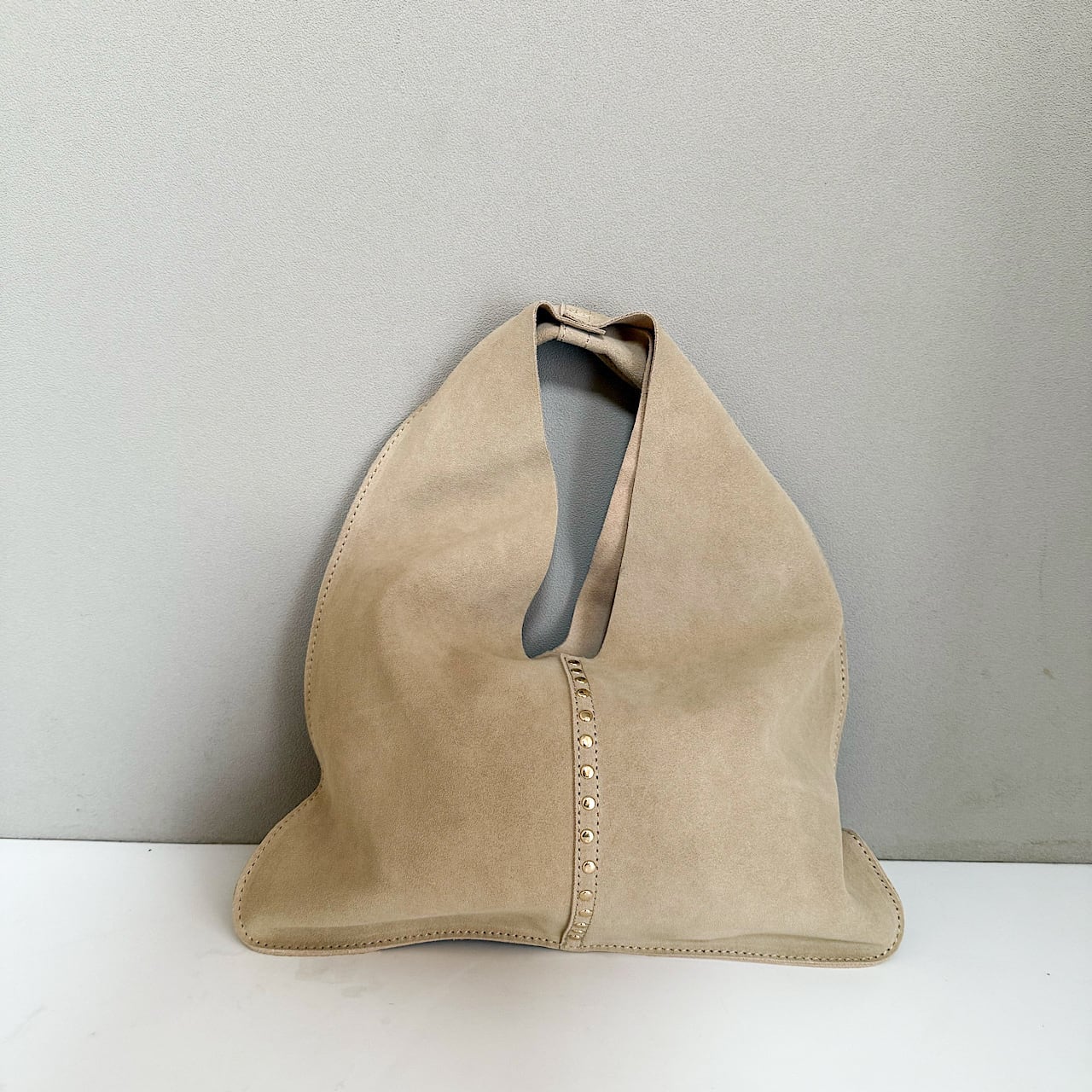 ちょっとしたお出かけやショッピングにも最適で、シンプルでありながらスタッズのアクセントが魅力を引き立てるバッグです。