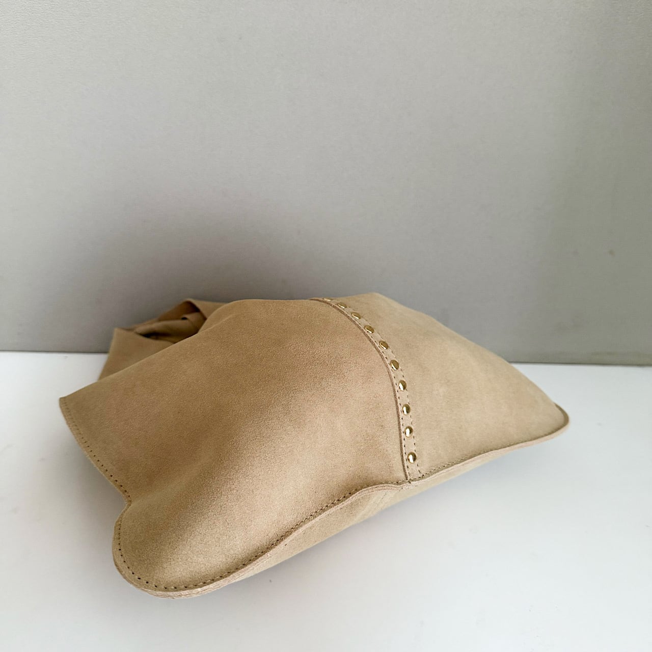 牛革の柔らかな質感と、華奢なスタッズが施された大人のカジュアルバッグ。