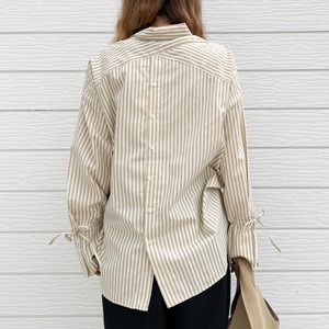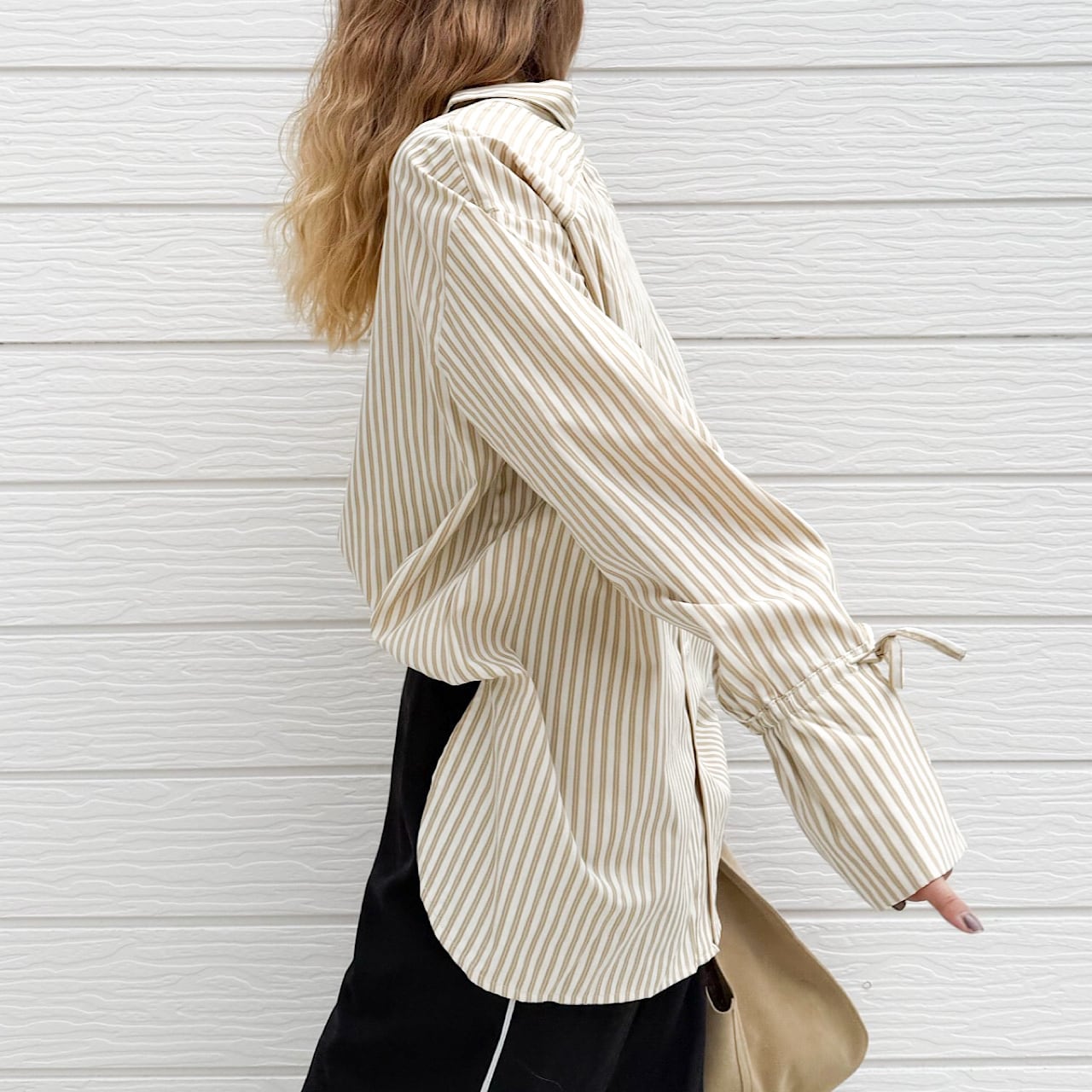 袖を絞ることでよりレディライクなスタイルに仕上がり、カジュアルアイテムとの相性も◎