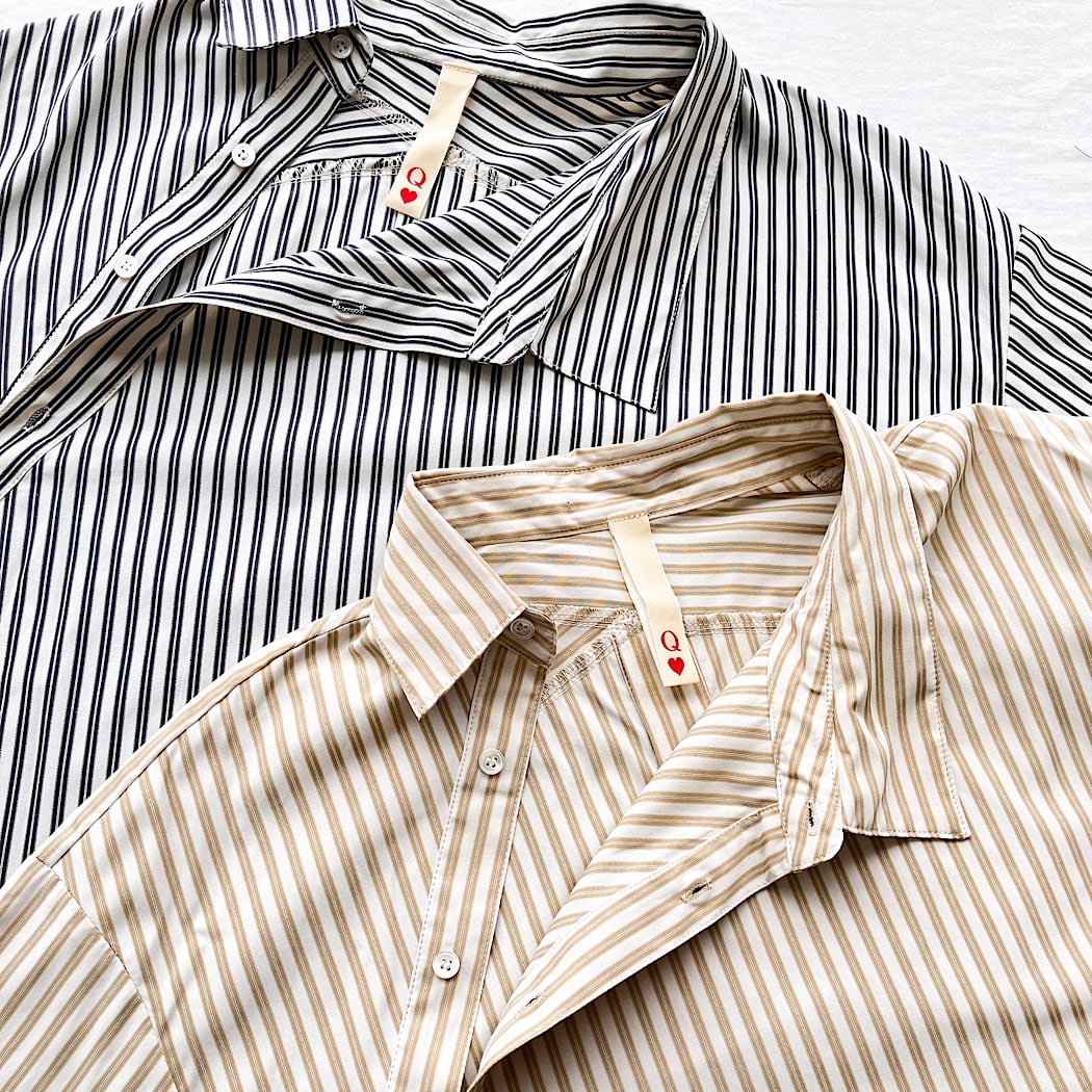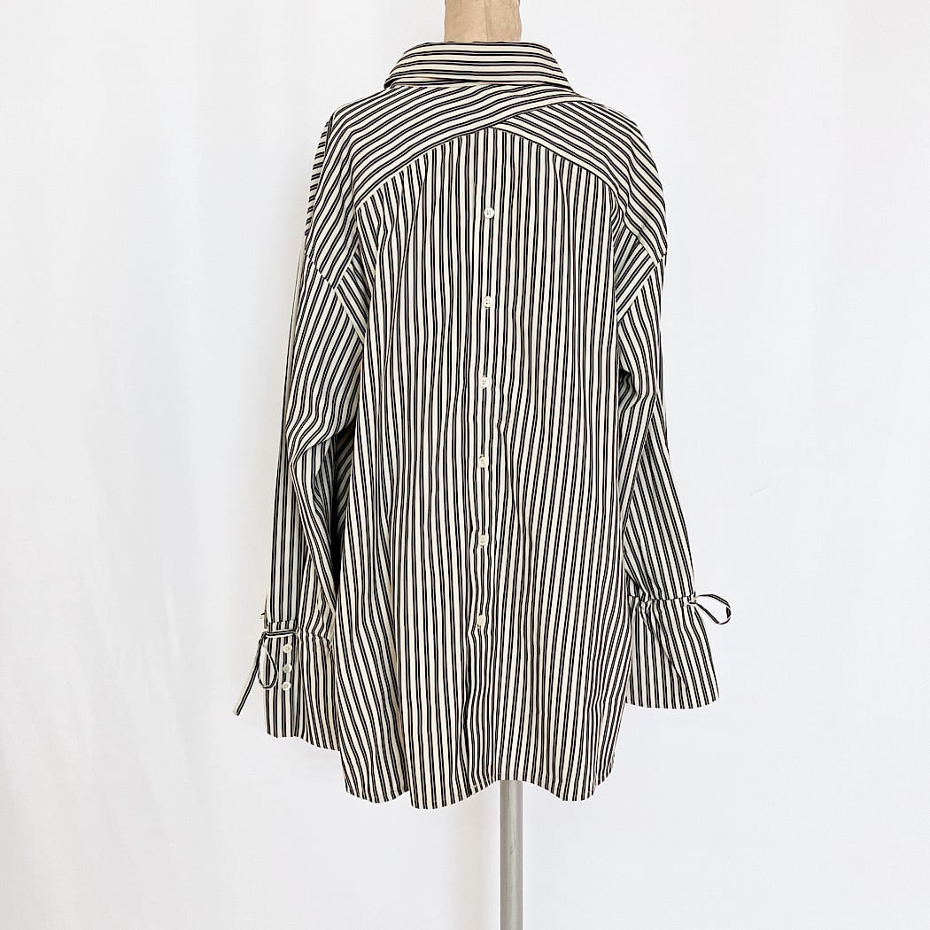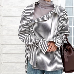 アシンメトリーな前開きのデザインが特徴のシャツです。
