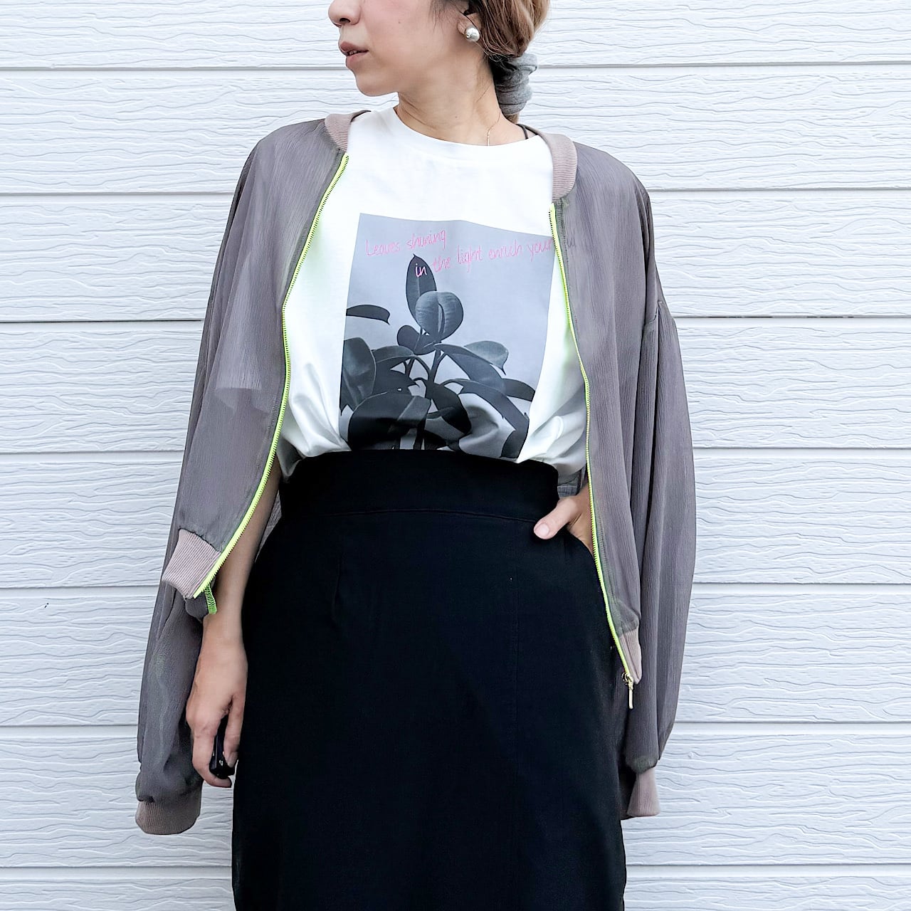 カジュアルながらも、こなれ感のあるスタイリングが楽しめるフォトTシャツです。