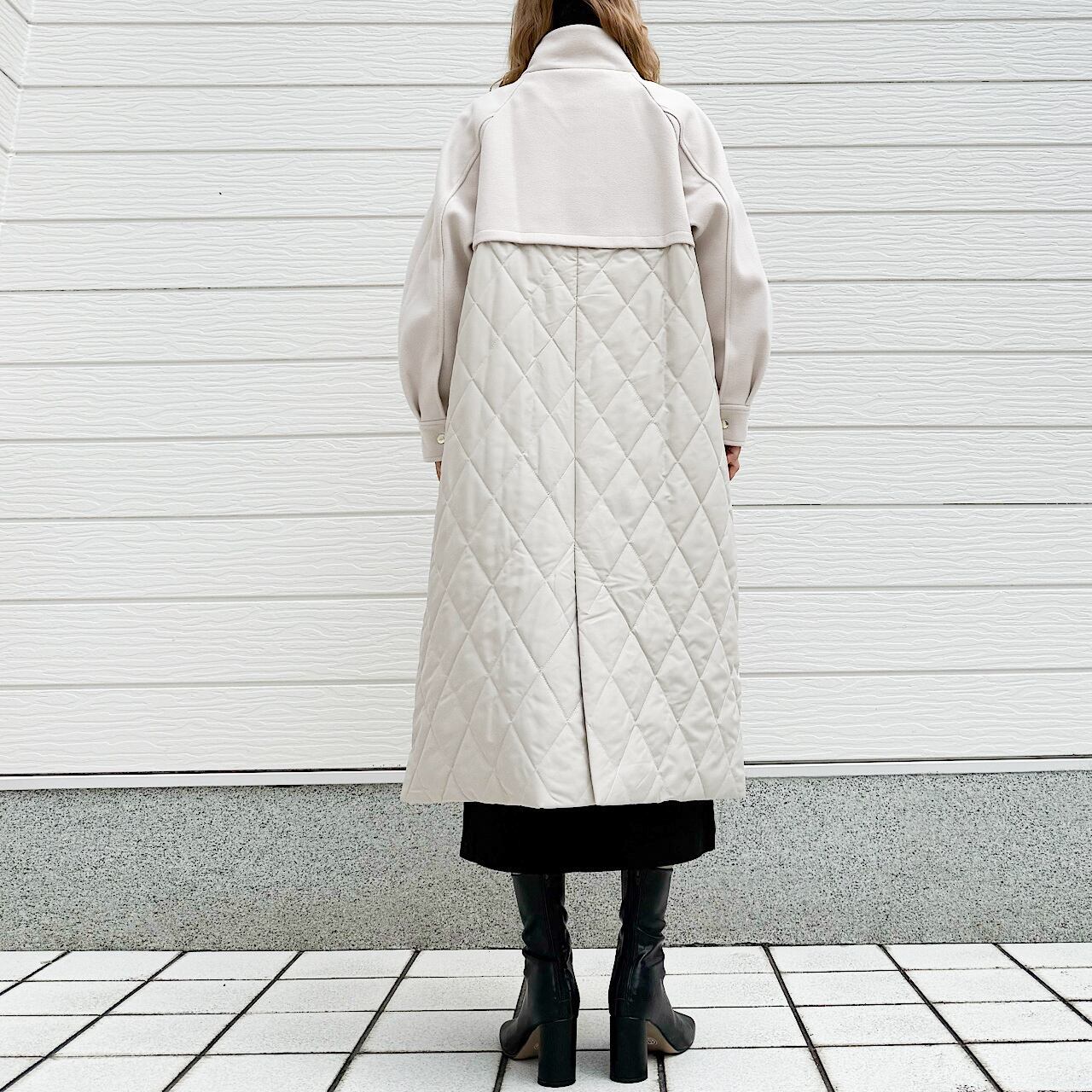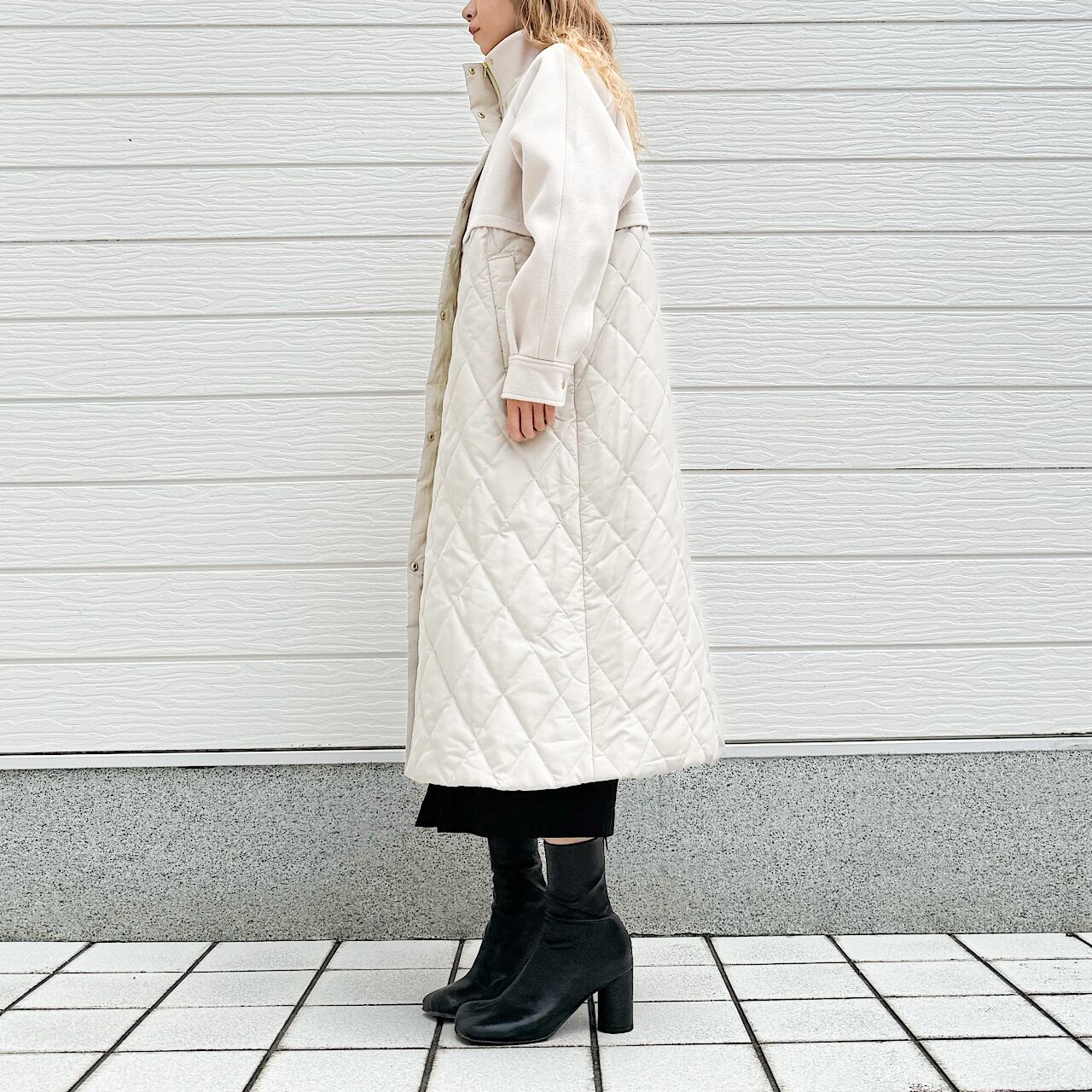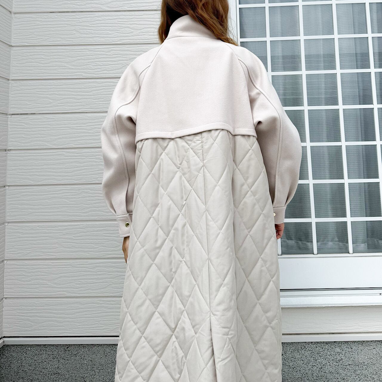 上品なう布帛とダイヤキルティングを組み合わせた、モードな表情のロングコートです。