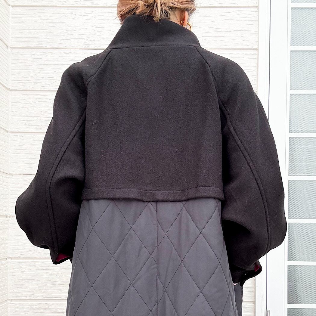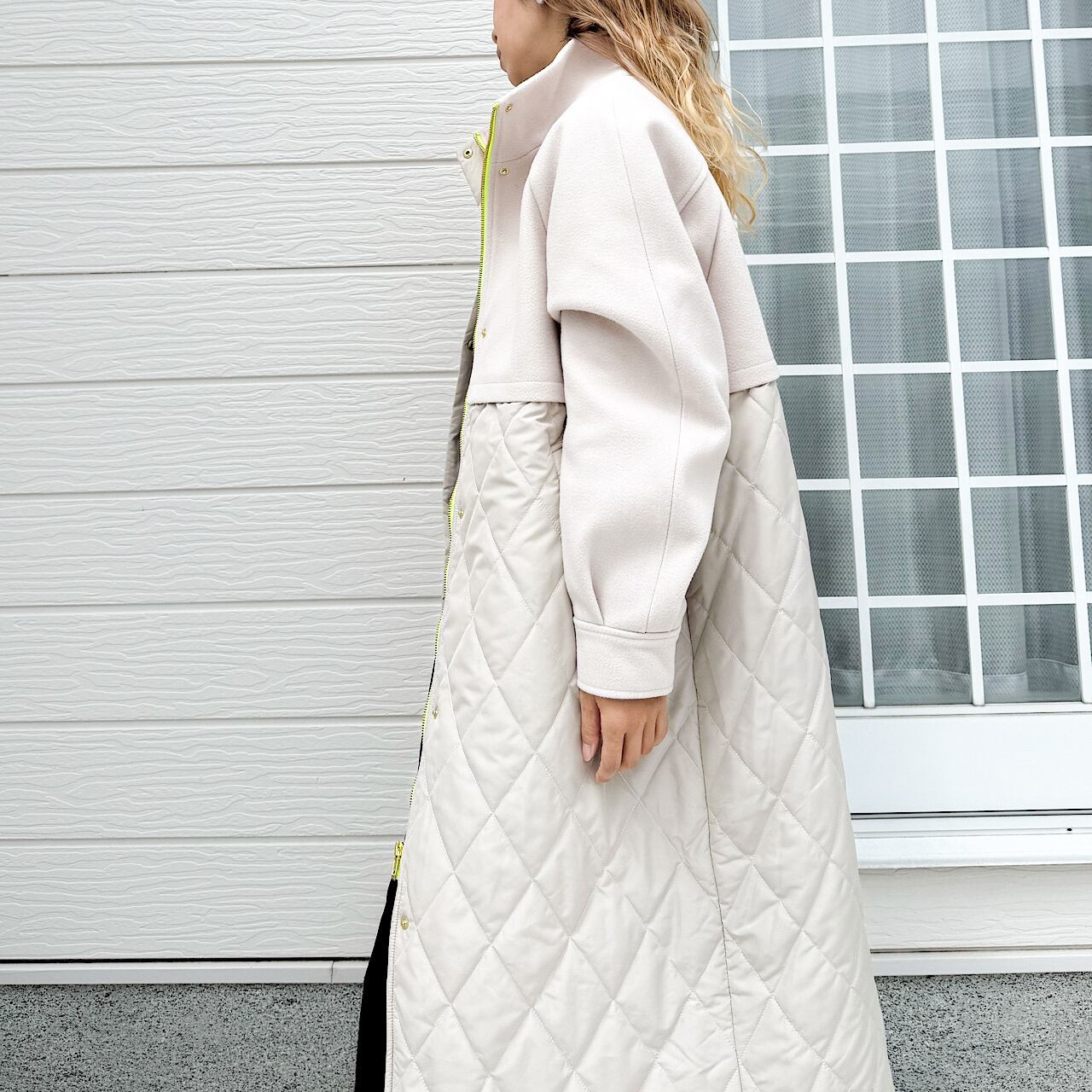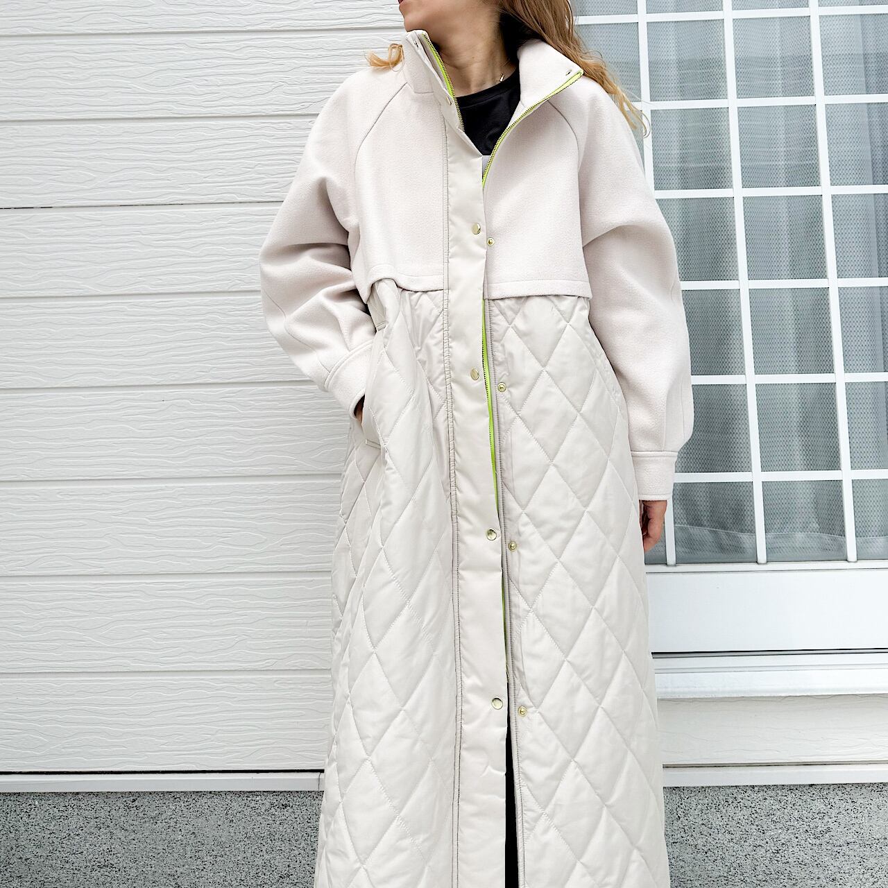 上品なう布帛とダイヤキルティングを組み合わせた、モードな表情のロングコートです。