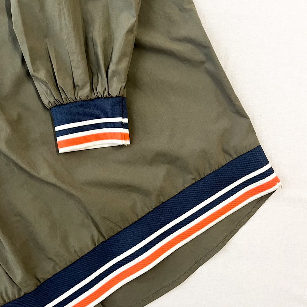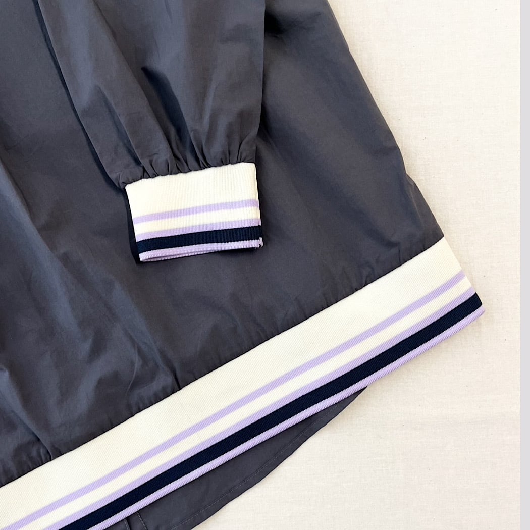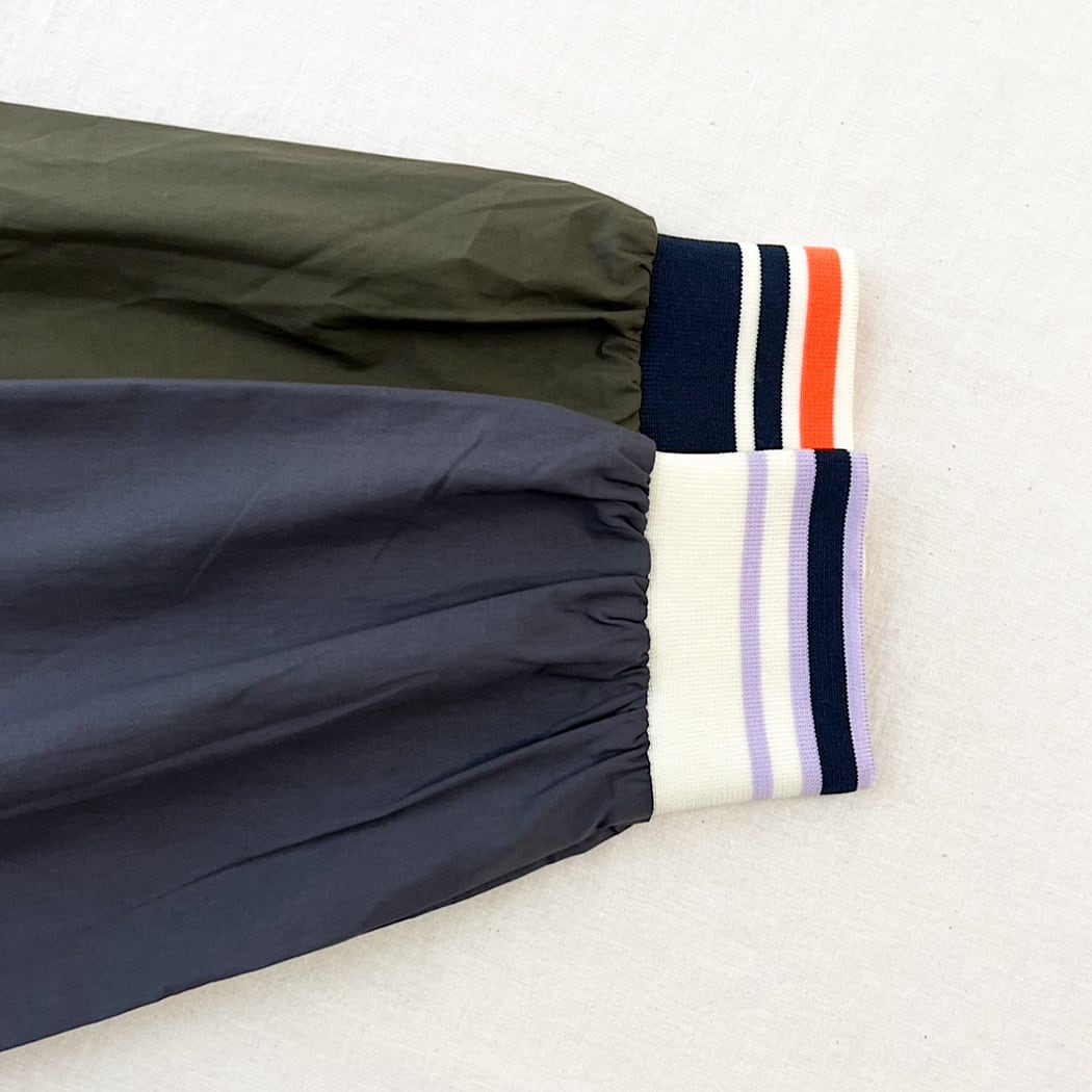 落ち着いたダークカラーの身頃にリブのカラーがアクセントのある仕上がりに。