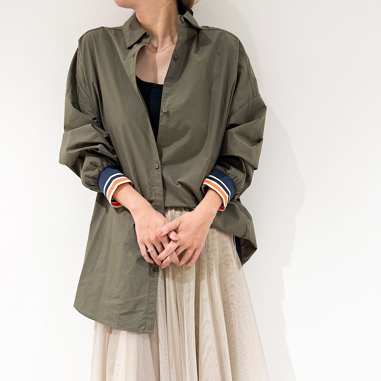大人気の袖と裾にリブがあしらわれている1枚でサマになるシャツの秋バージョンが登場です。