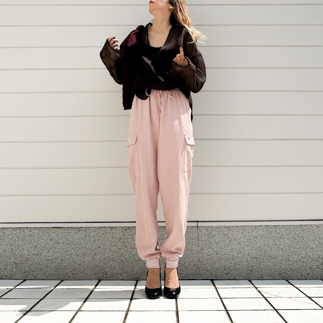 カーゴタイプのカジュアルなデザインでありながら、素材の落ち感を活かしたキレイめジョガーパンツは、リラックス感のある上品な着こなしに◎