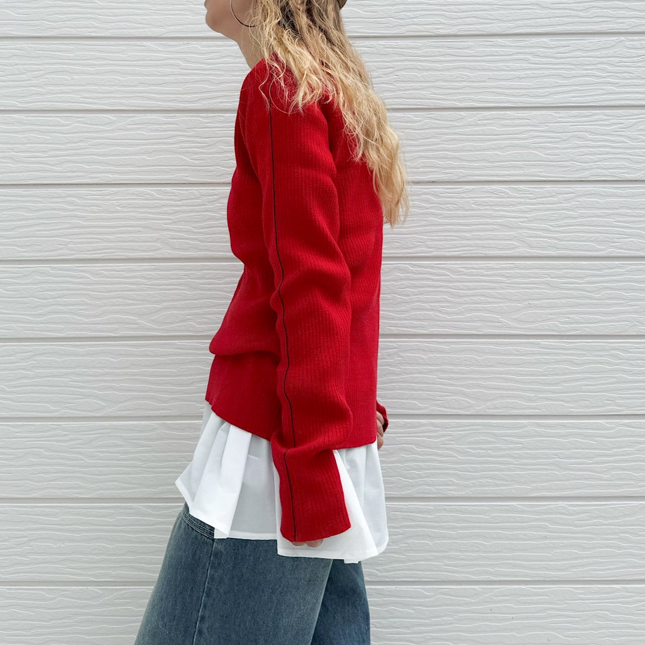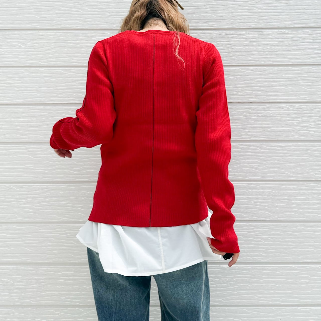 細いカラーラインが遊び心を感じる、配色ランダムリブニットです。