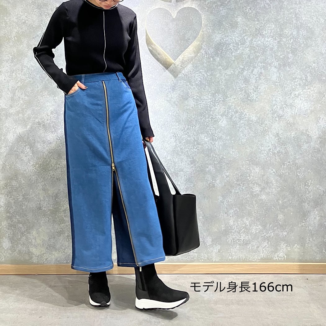 程よく体にフィットするサイズ感ですが、立体感のあるランダムリブ編みで、体のラインを拾いすぎず着心地の良いニットです。