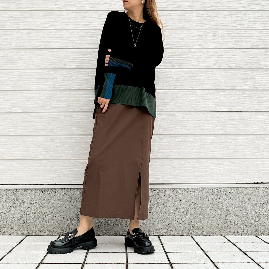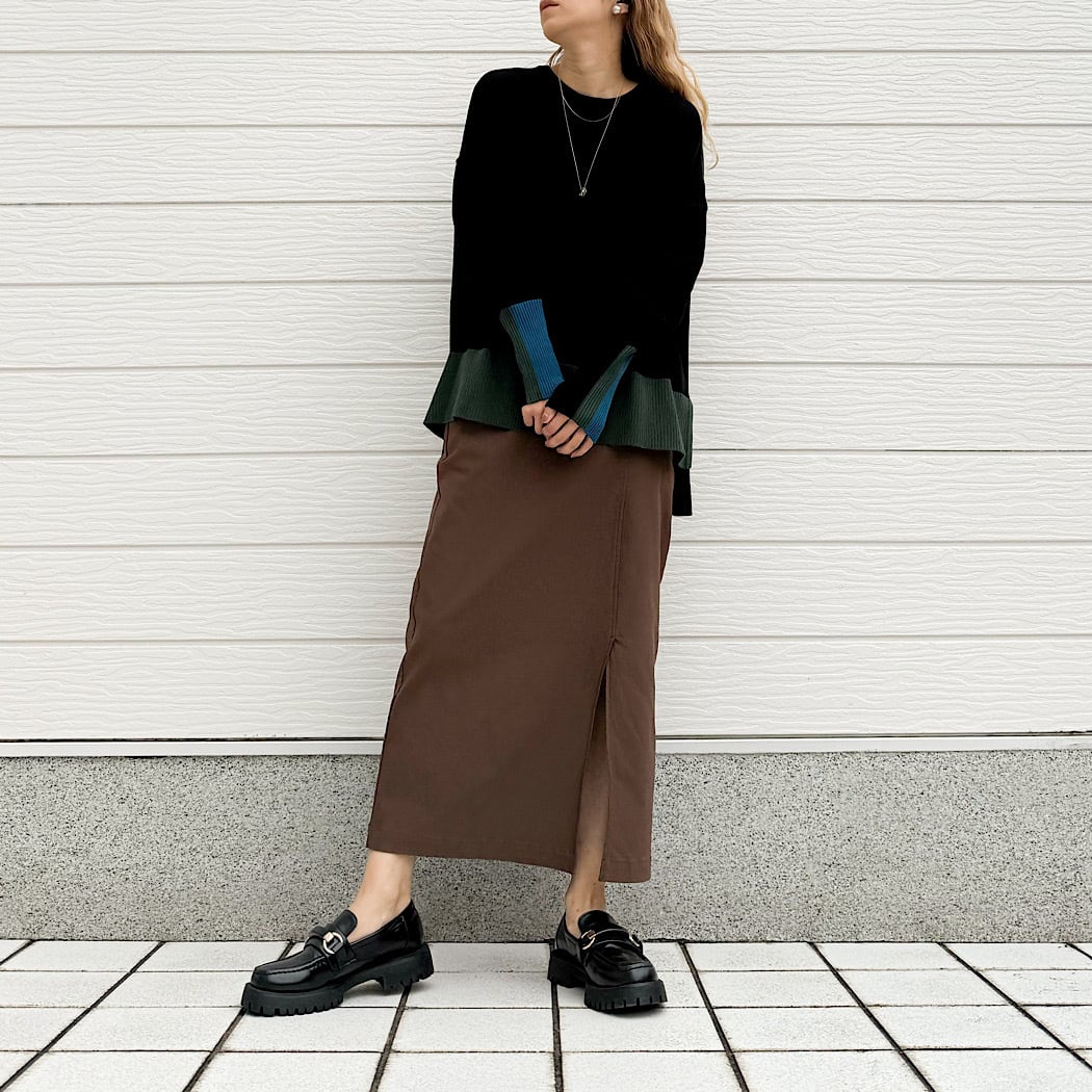 着回しが効くので、ワイドやスキニーなど様々なボトムに合わせられる万能さも魅力。