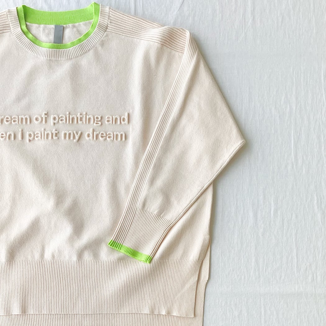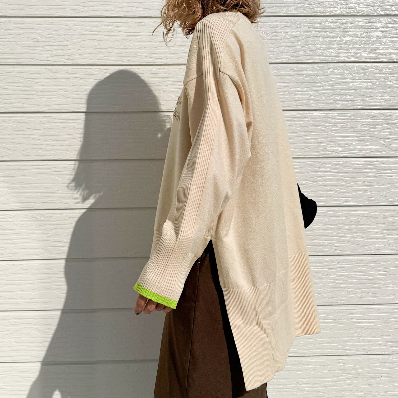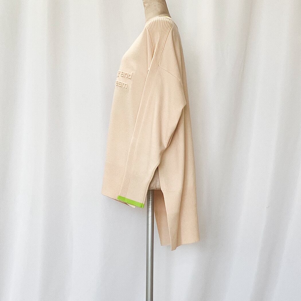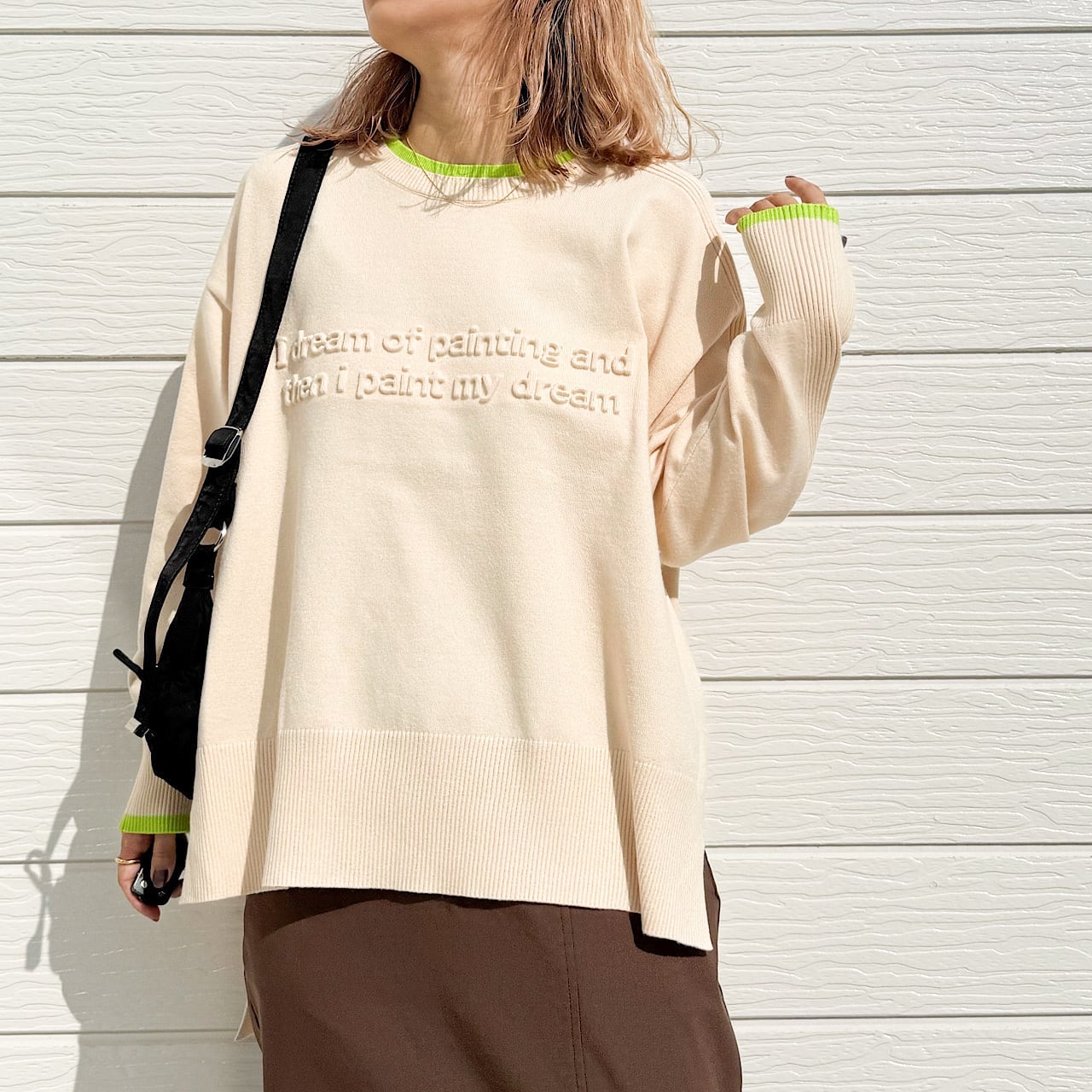 エンボスロゴが施されたデザイン性豊かなニットです。