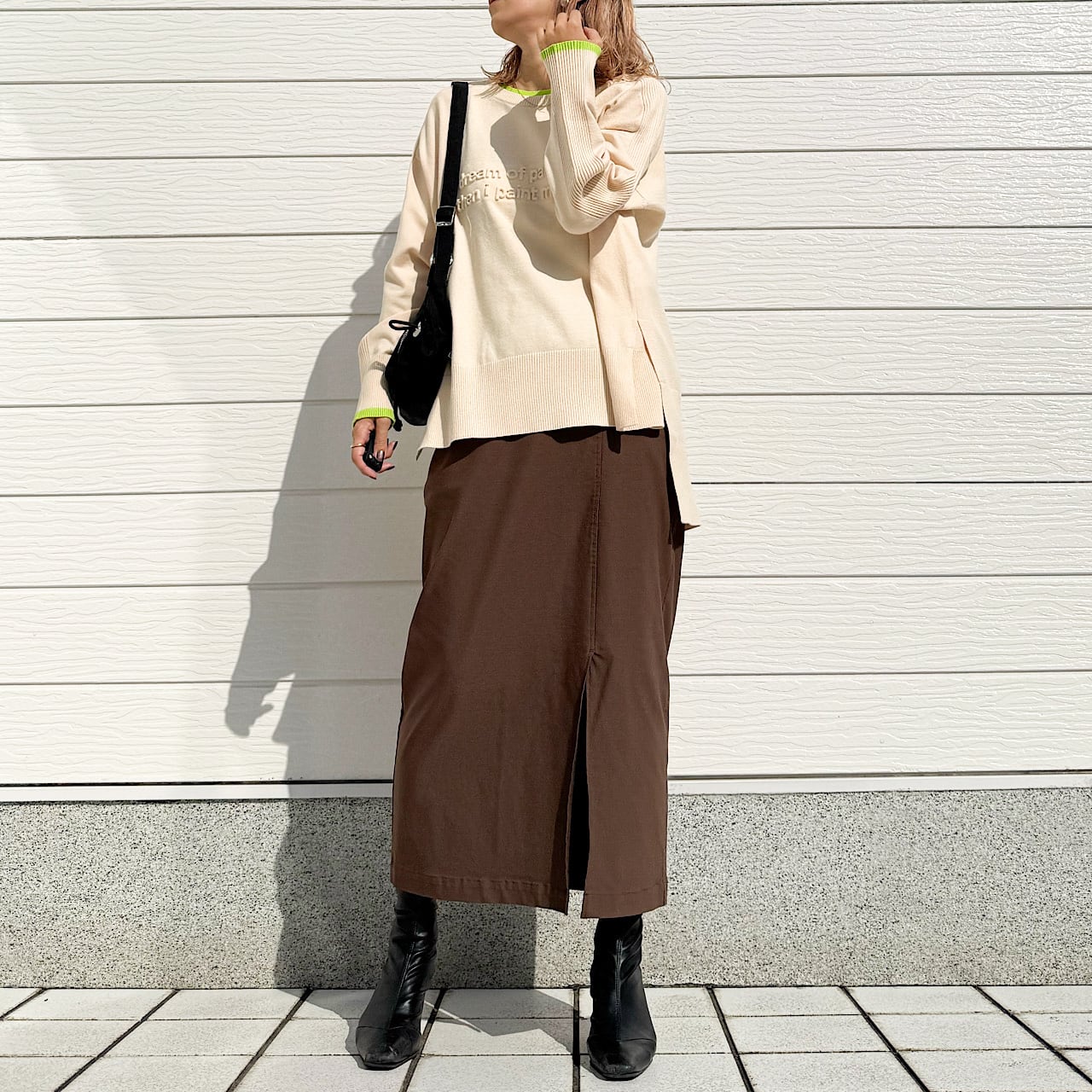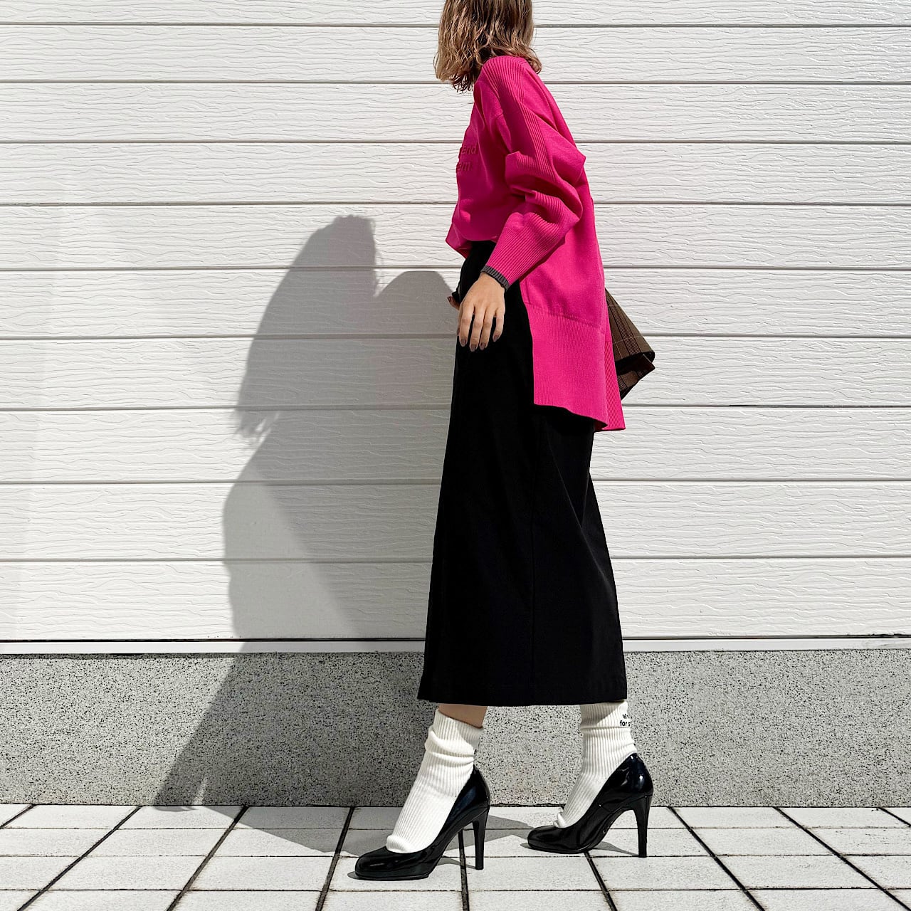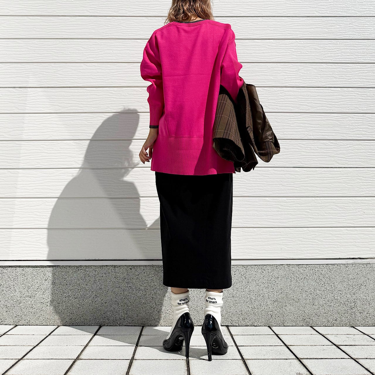 シンプルながらも存在感のあるデザインがポイントのニットです。