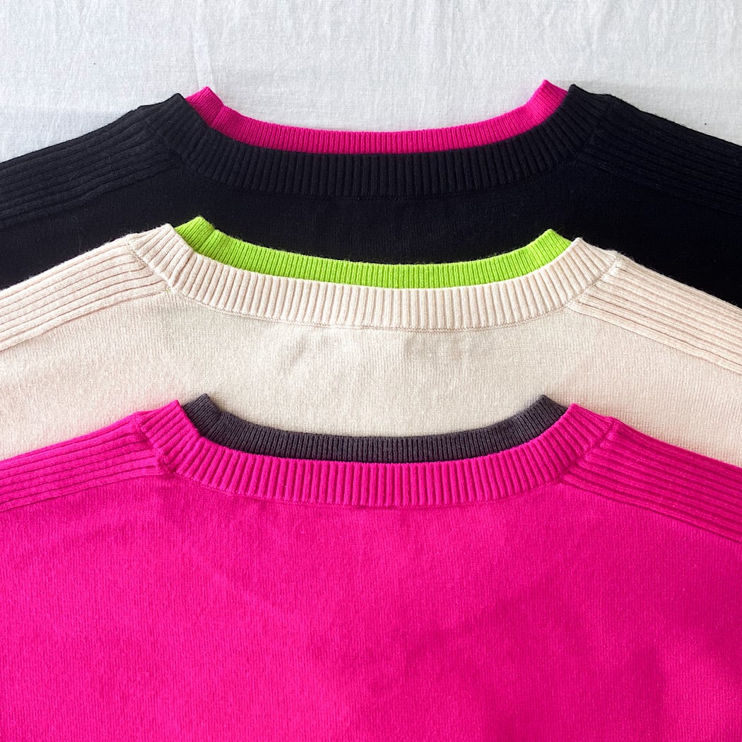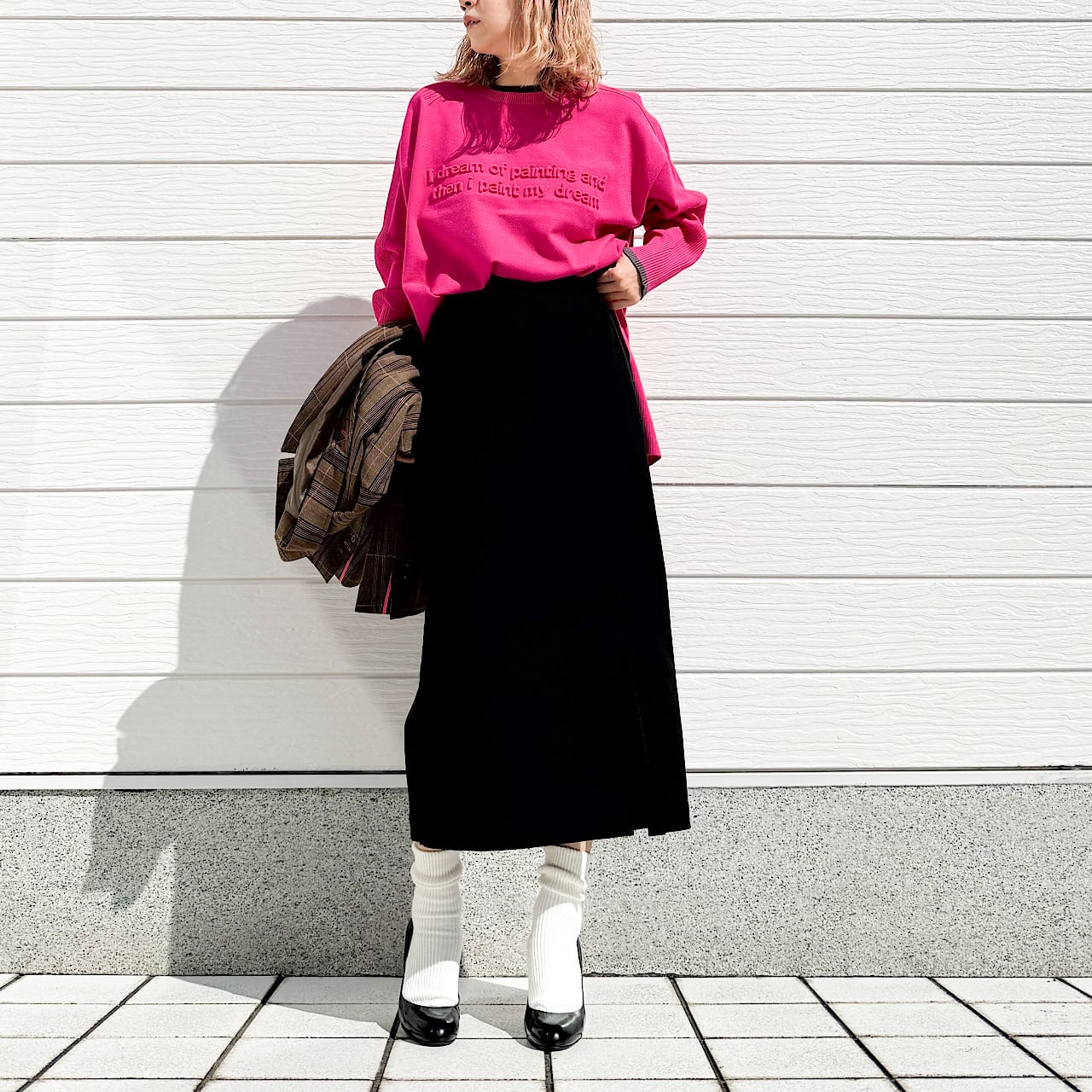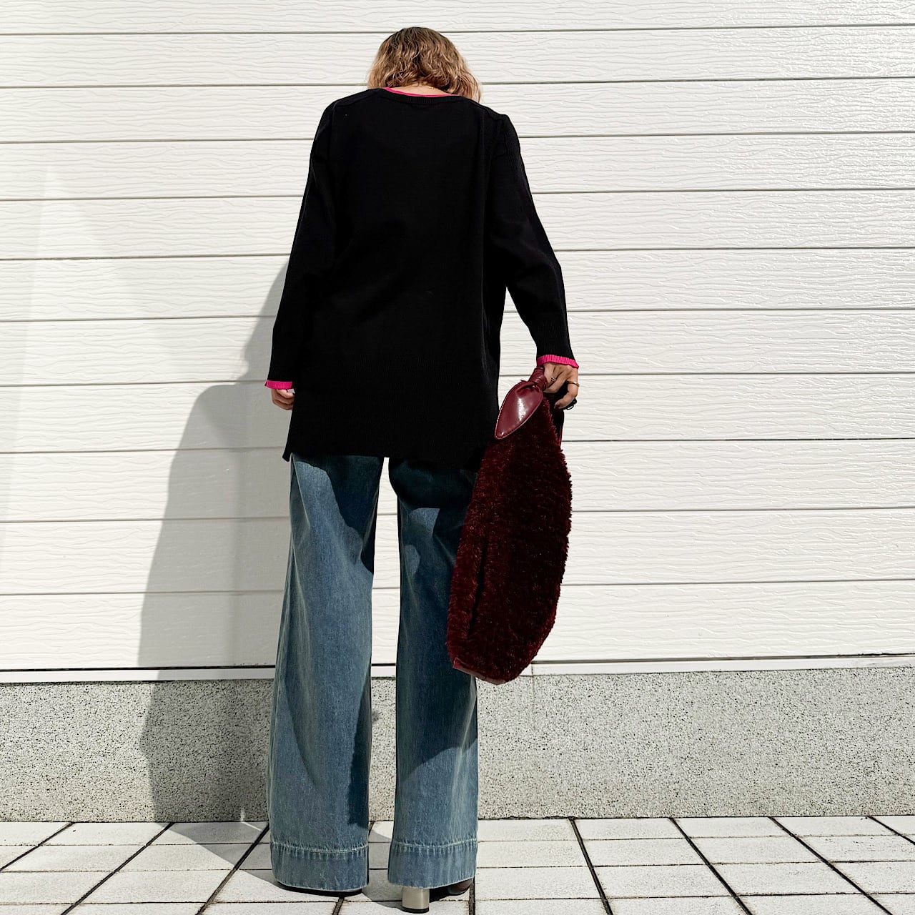 シンプルながらも存在感のあるデザインがポイントのニットです。