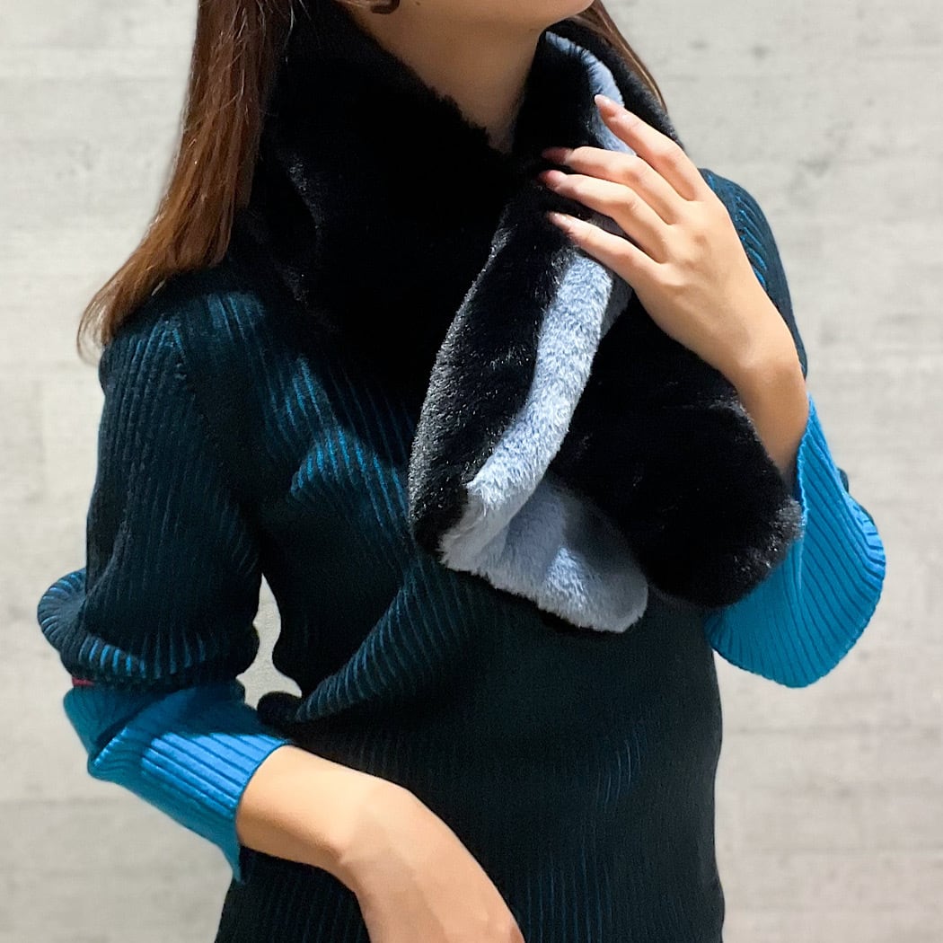 異なるフェイクファーを表裏に使用した、リバーシブル仕様のティペットです。