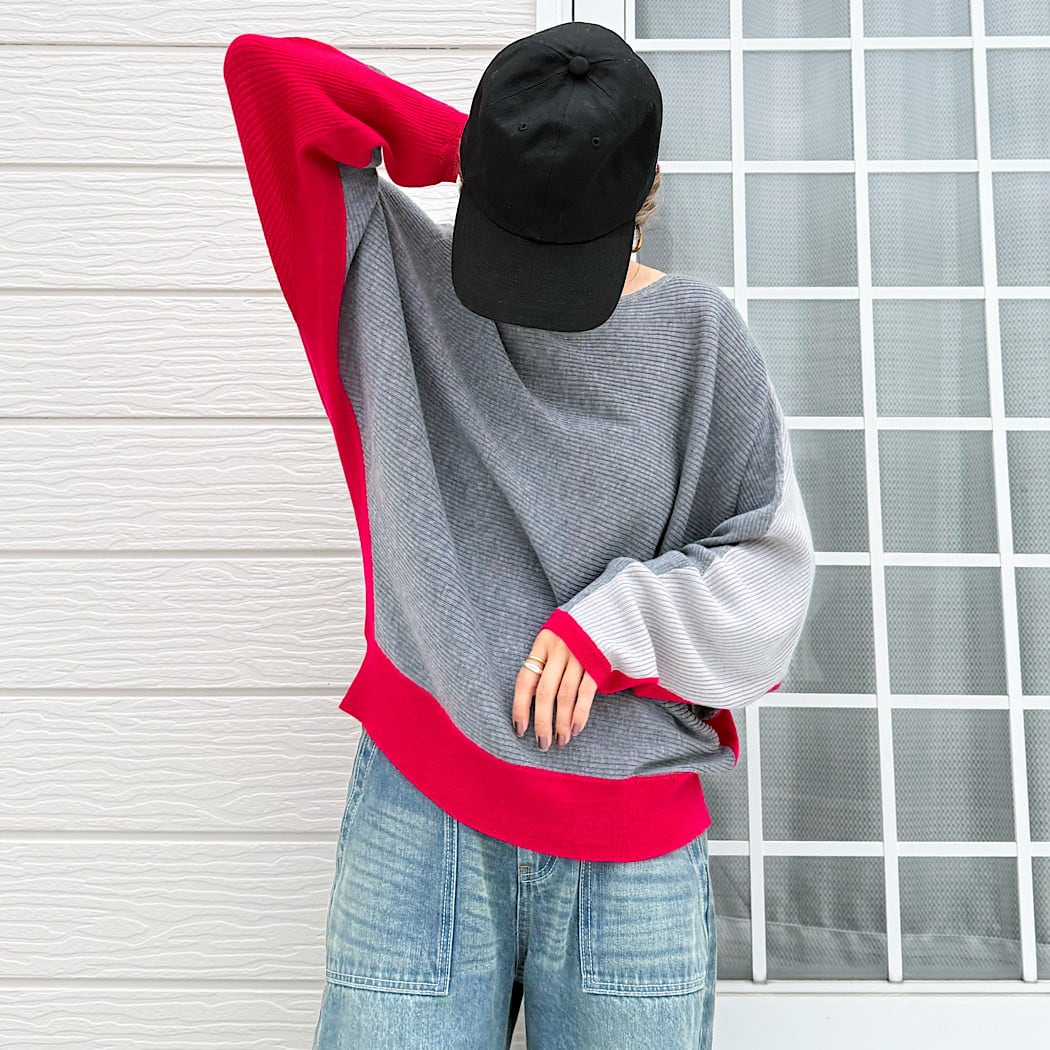 ドルマンスリーブの適度なゆるさが可愛い、毎年人気の横リブニットの登場です。