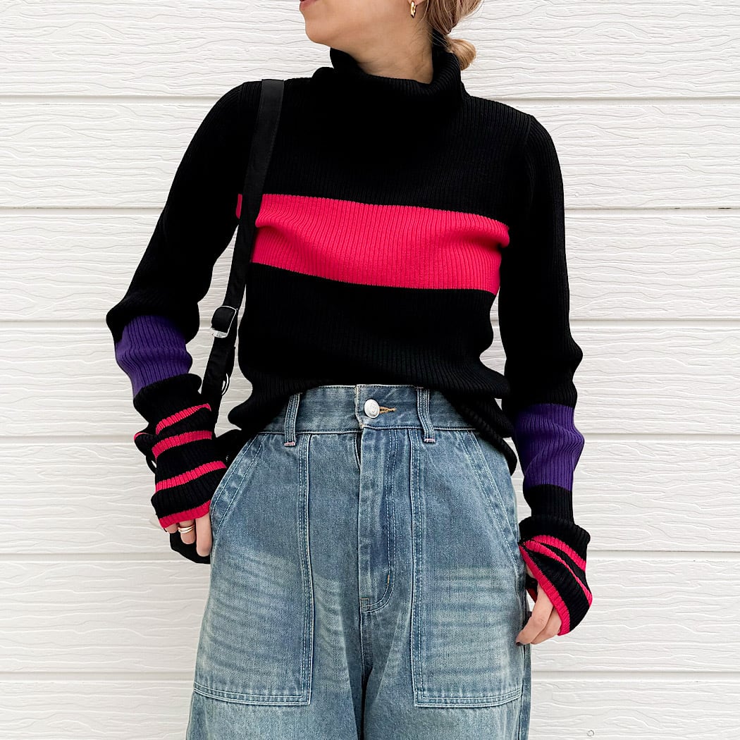 リブタートルカラーニット
