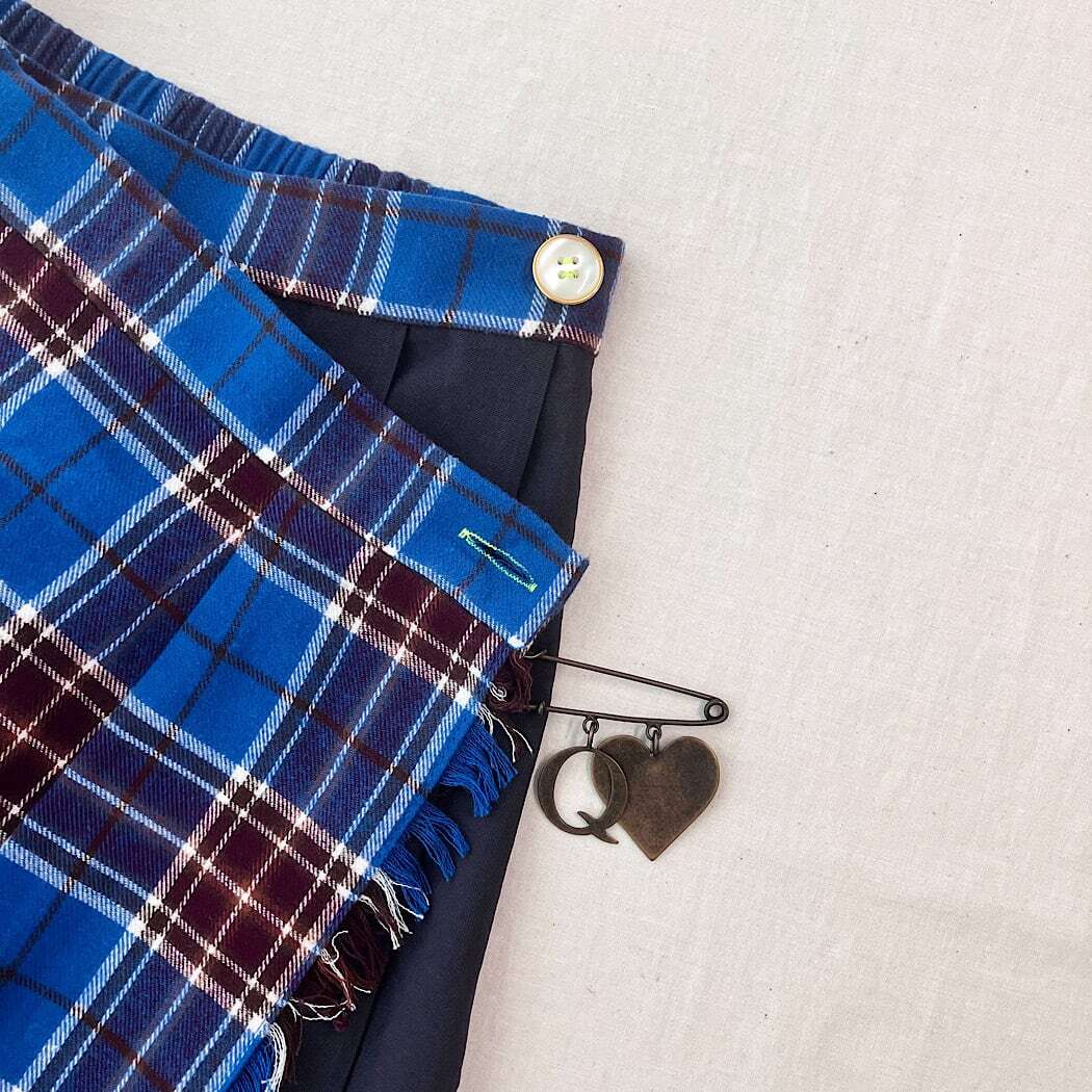 Qチャームと、ハート型のチャームデザインのキルトピン(ストールピン)です。