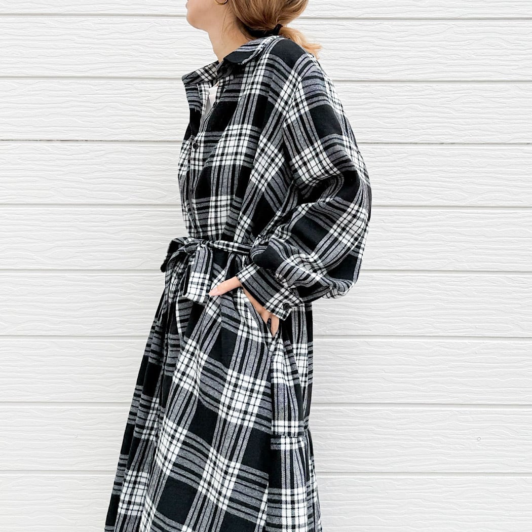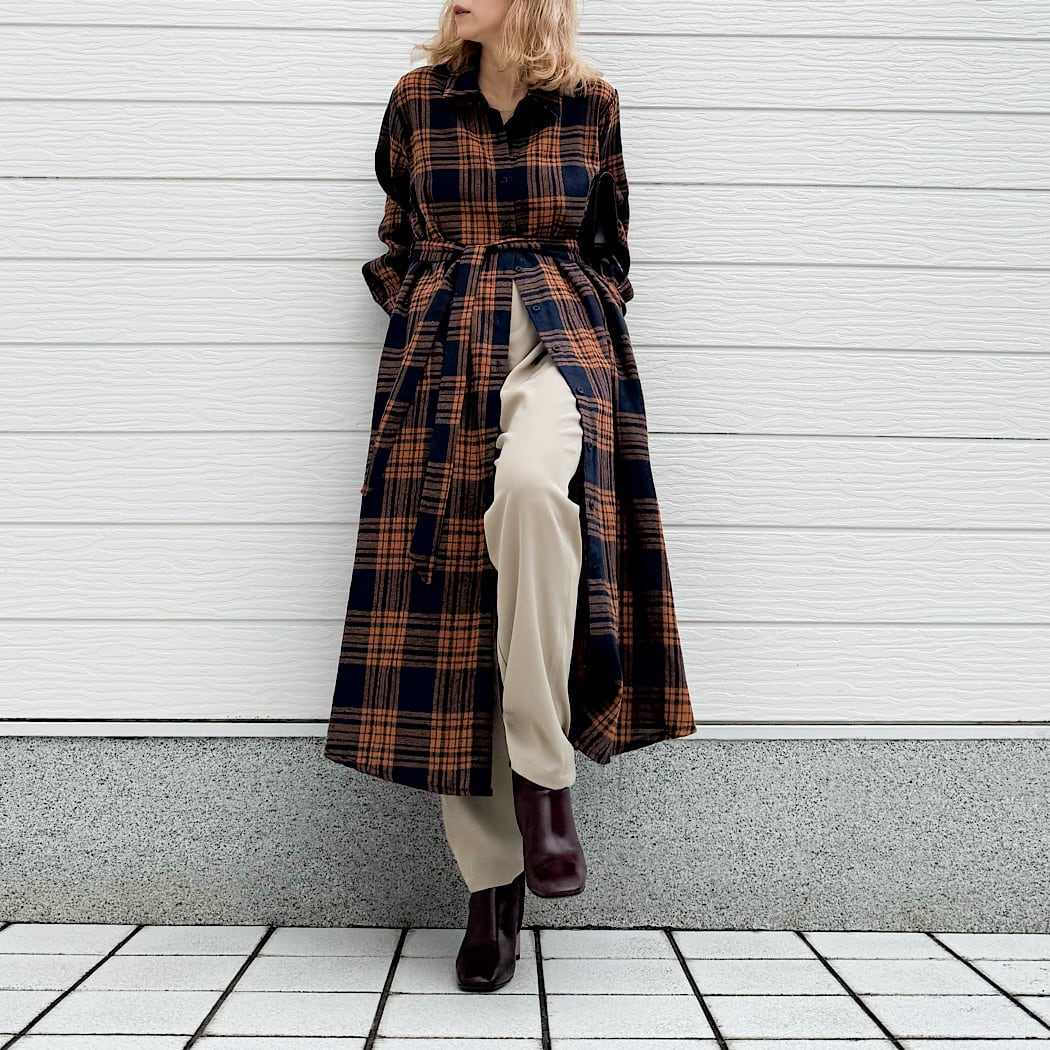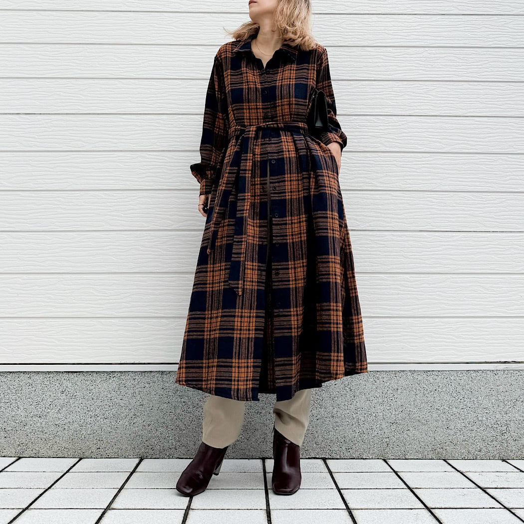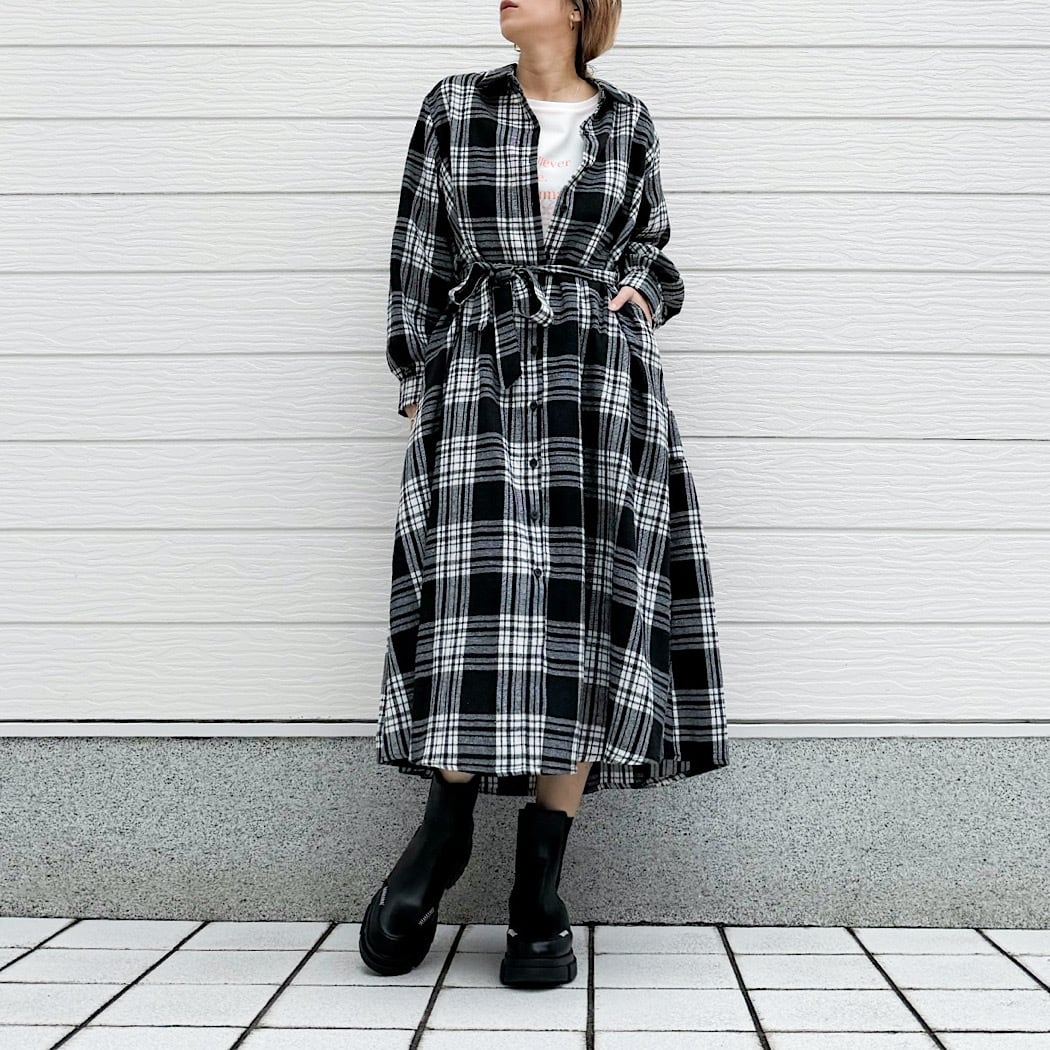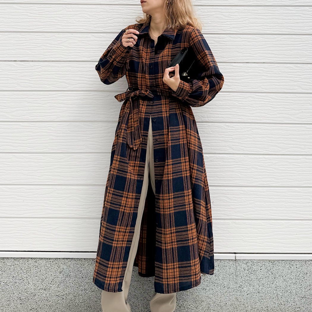 季節のムードを高めてくれるチェック柄シャツワンピースです。