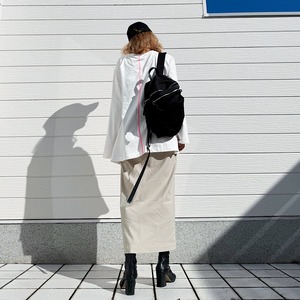安心感のある着丈と、タイトなシルエットでキレイめスタイリングにもピッタリです。