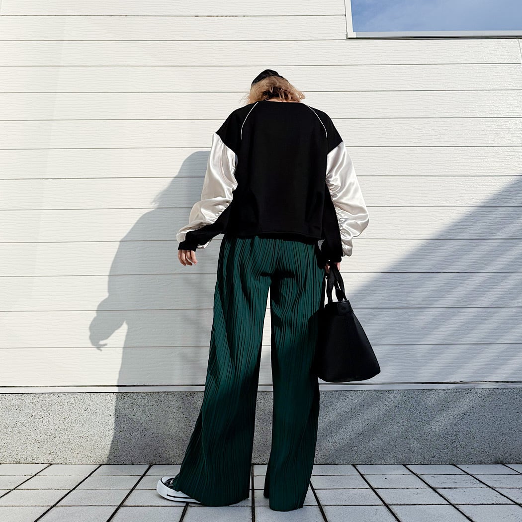 リラックスできる着心地と、立体的なプリーツが上品でスタイルアップに◎