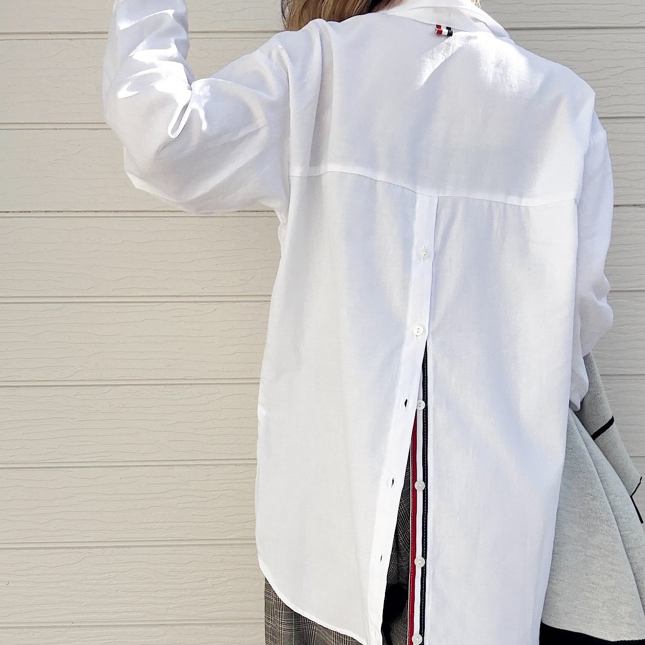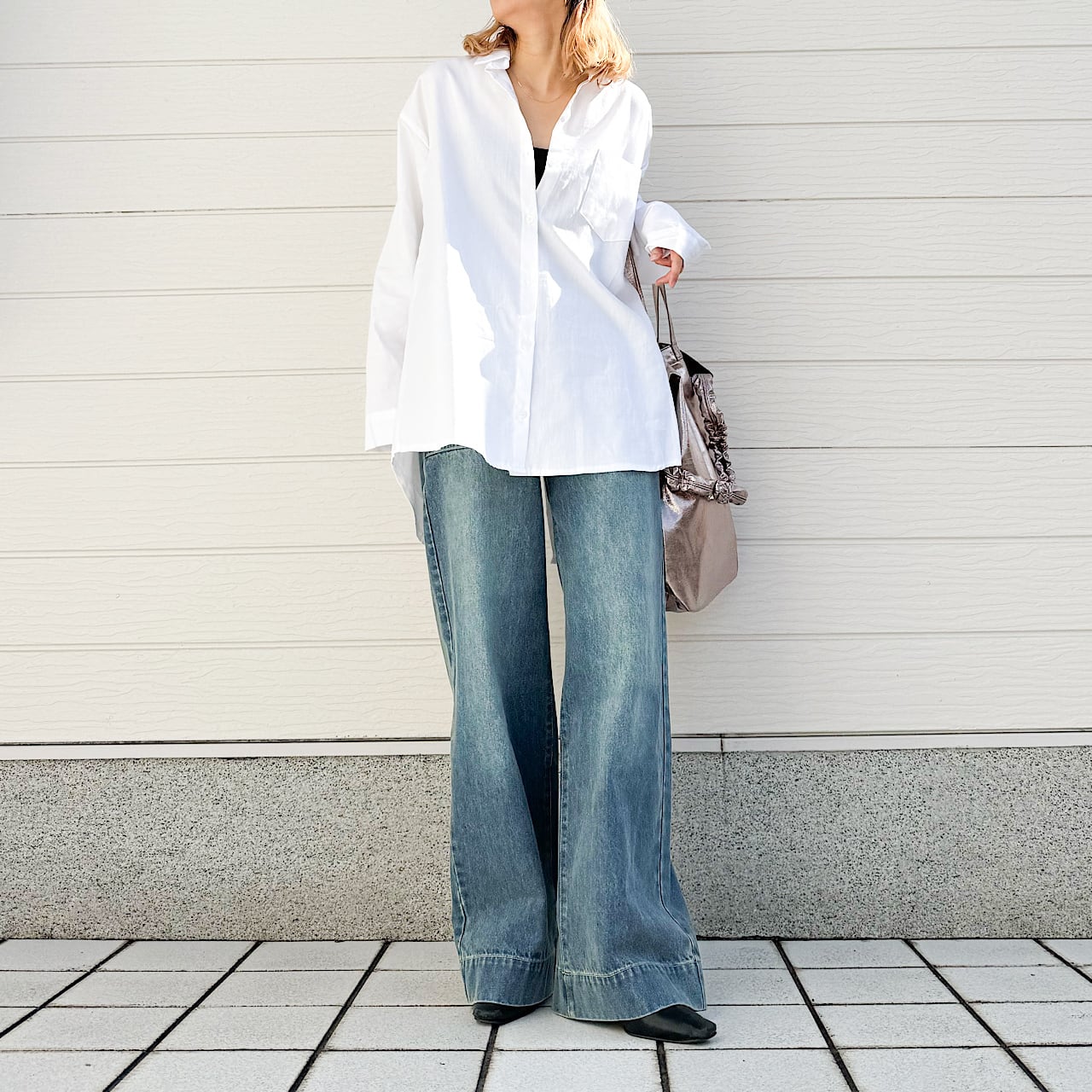 キレイ目シャツですが、遊び心がありシンプルなアイテムともかっこよく着回しすることができます。