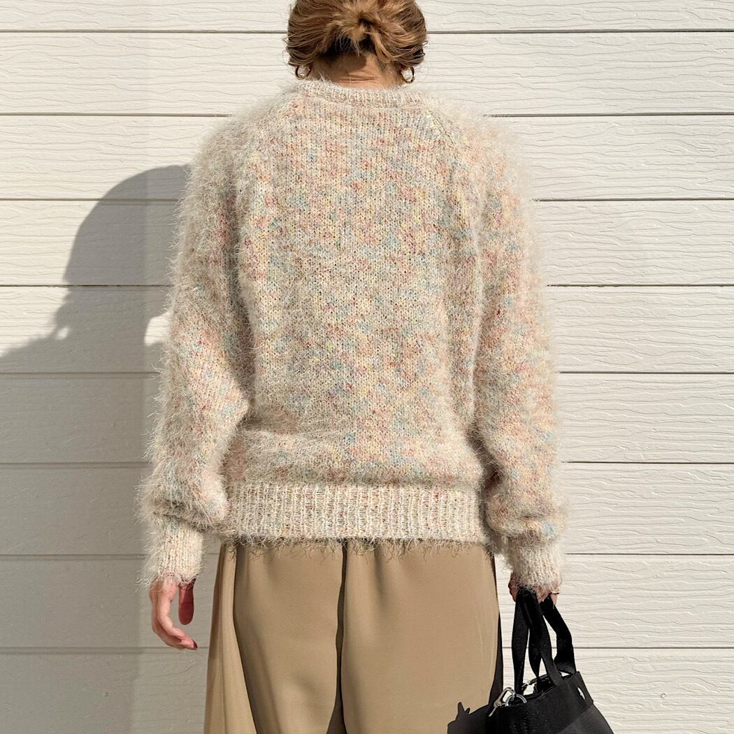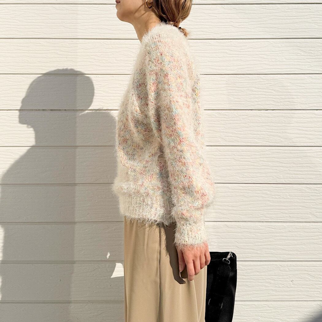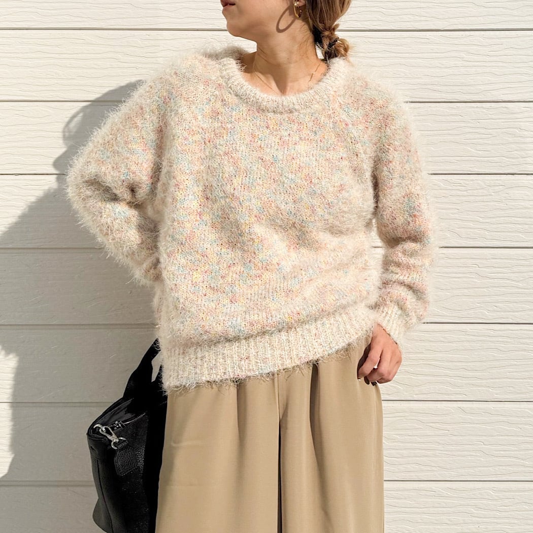 ふんわりとした毛足が魅力のニットに、さりげないカラーネップをミックスした表情豊かニットです。