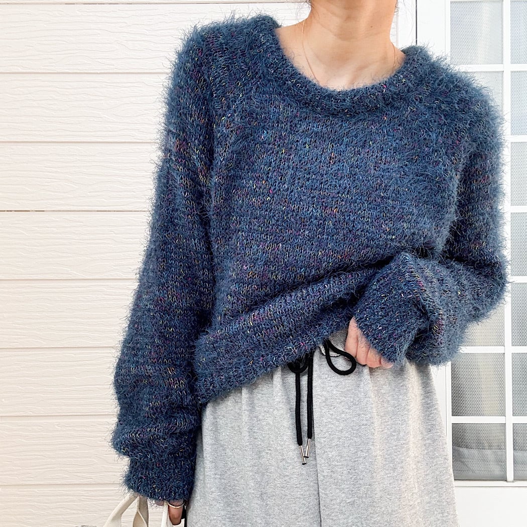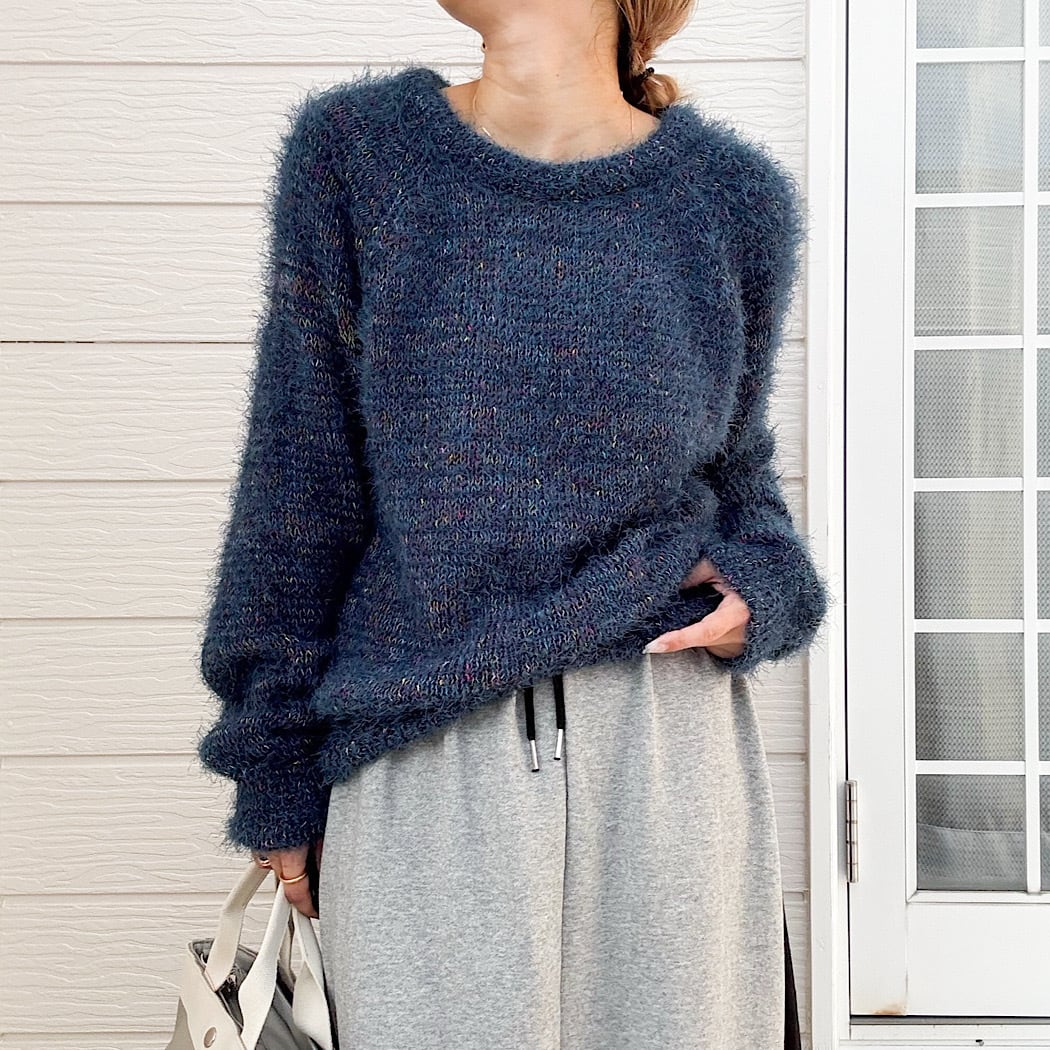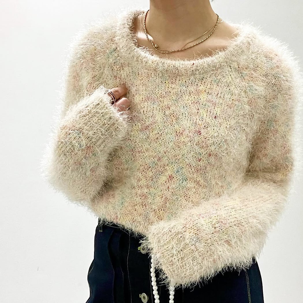 ふんわりとした毛足が魅力のニットに、さりげないカラーネップをミックスした表情豊かニットです。