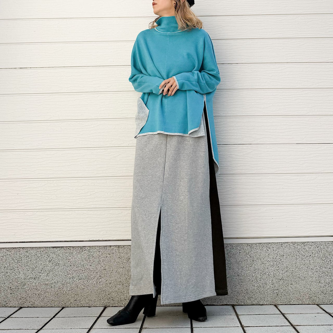 裏毛バイカラー切替スカート