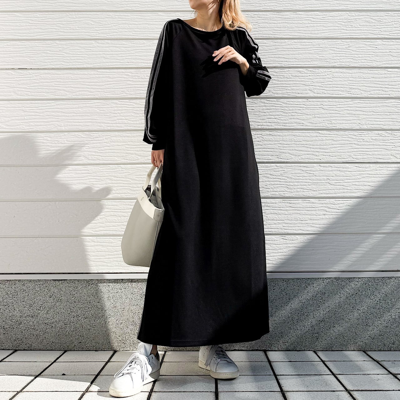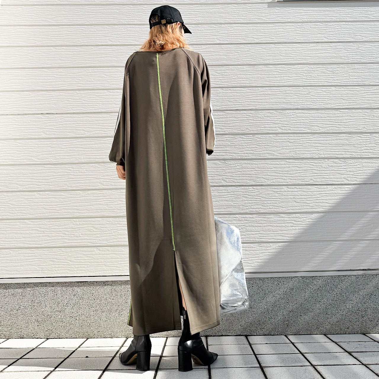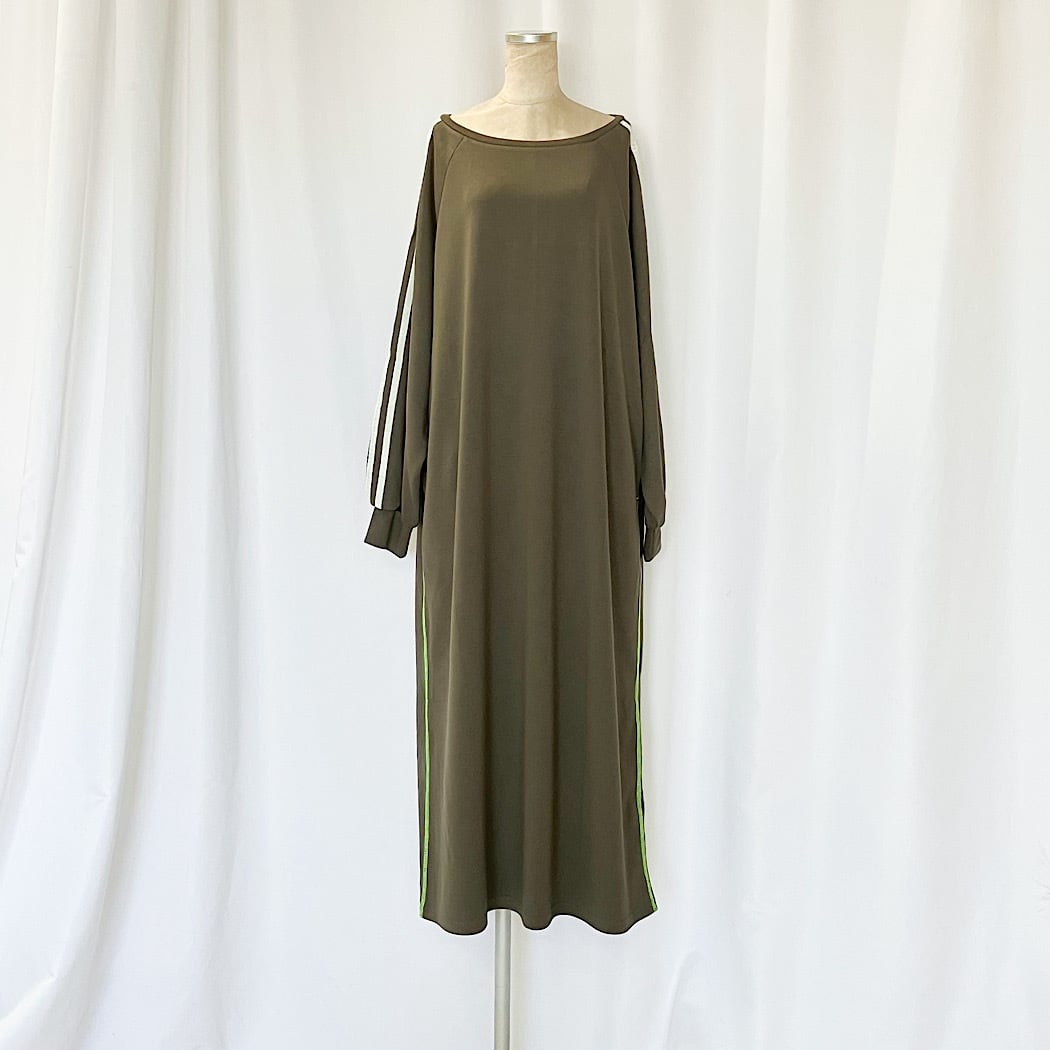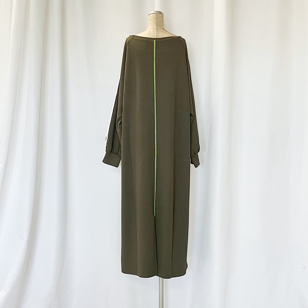 裾のサイドスリットや配色が、歩くたびに軽やかさと遊び心をプラスしてくれるワンピースです。