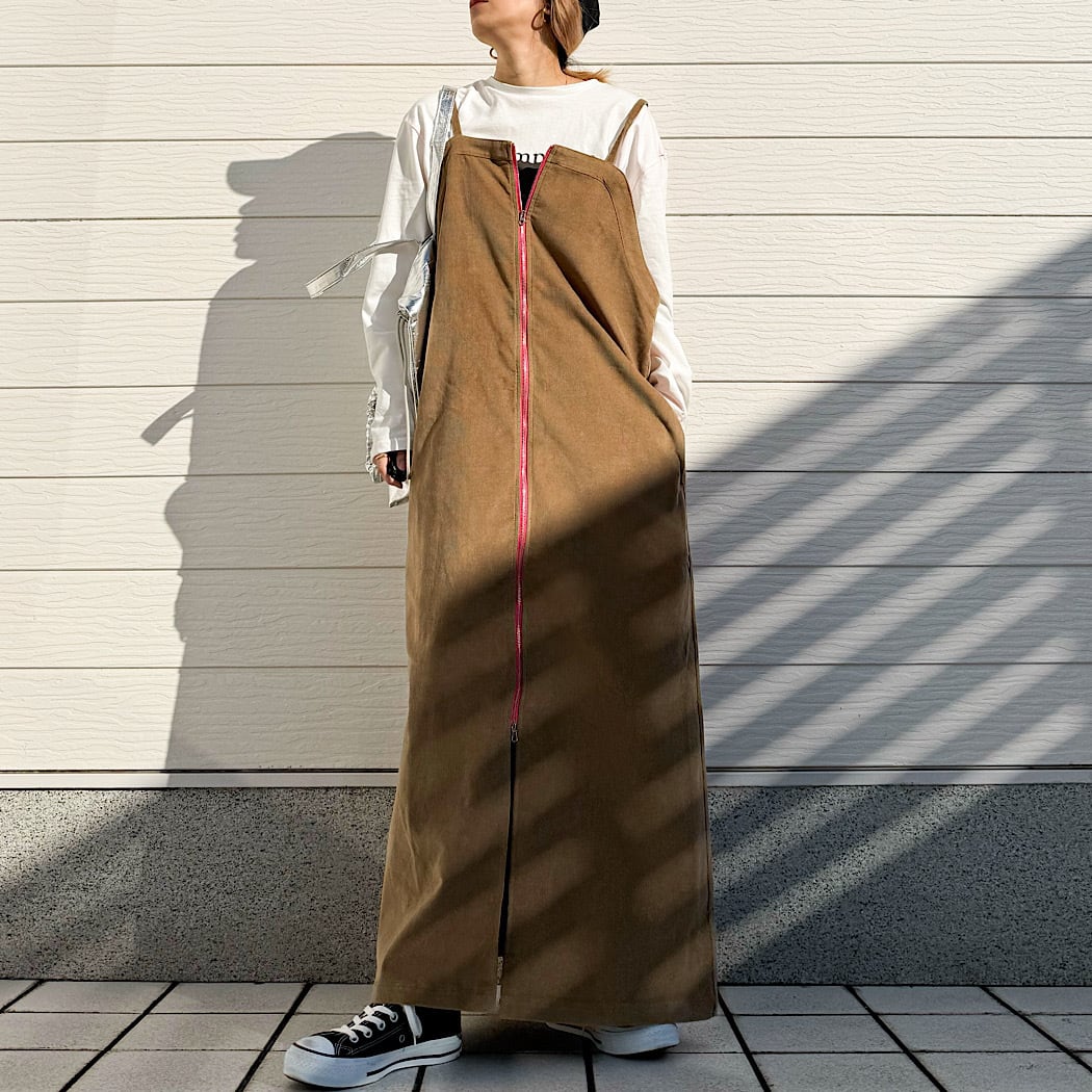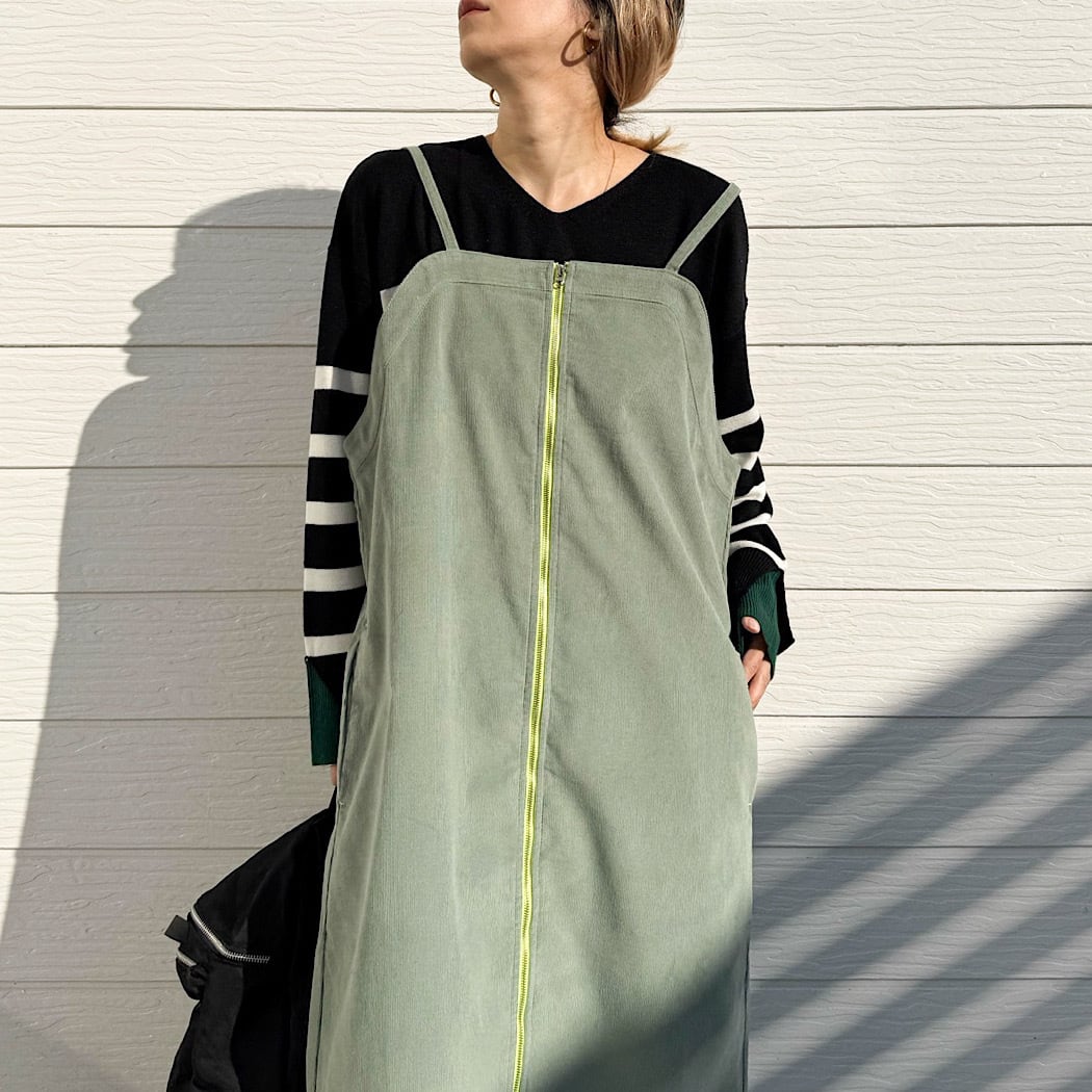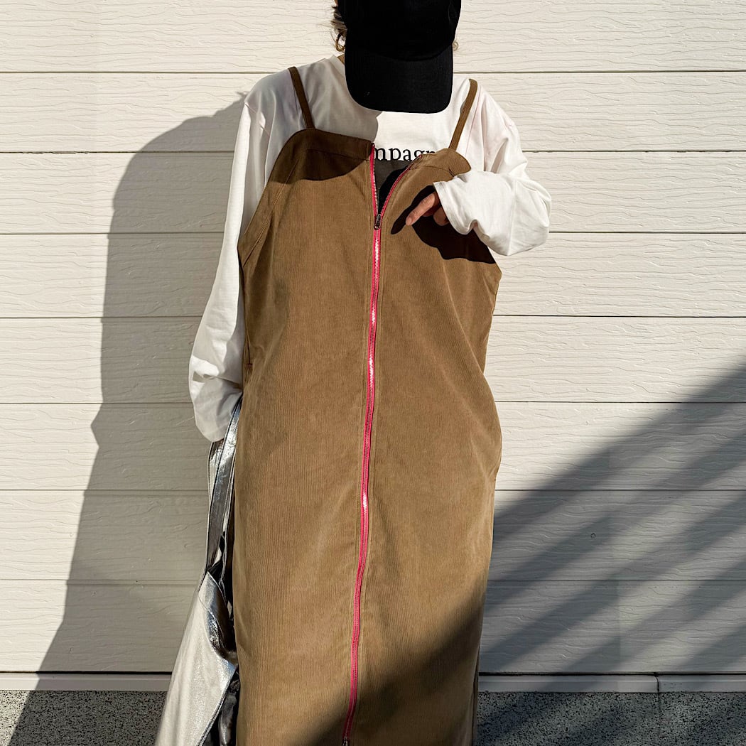 コーデュロイZIPキャミワンピ