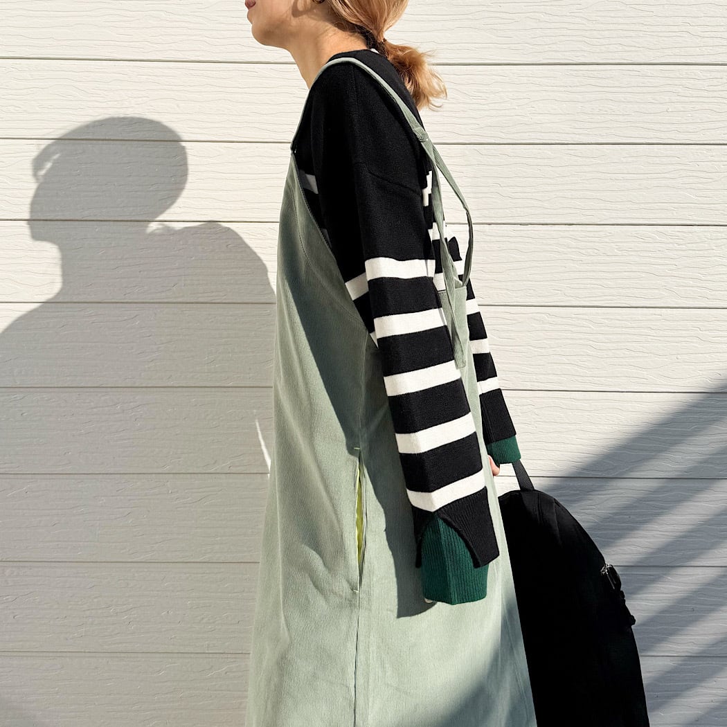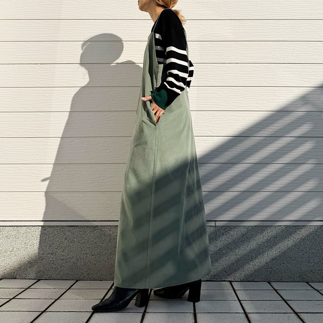 ゆるっとした抜け感と、まっすぐ落ちるIラインのシルエットが魅力のコーデュロイジップワンピーです。