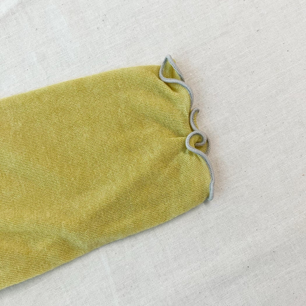 とても細い糸で編んだ生地を使い、ガーゼのように柔らかく肌触りの良い一着。