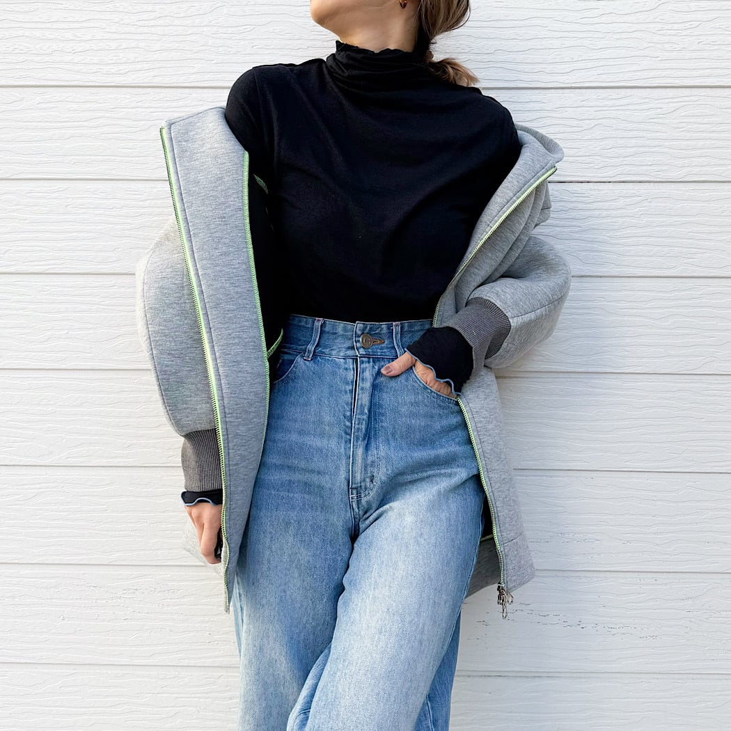 袖は少し長めにしているので、ちら見せしてレイヤードコーデも楽しめます。