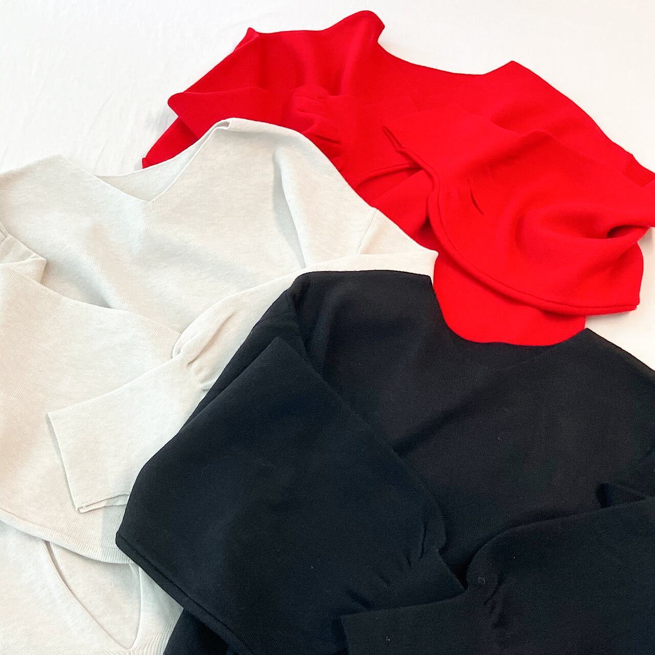 前後2way仕様になっており、デコルテを美しく魅せてくれるVネックとボートネックで着用できます。