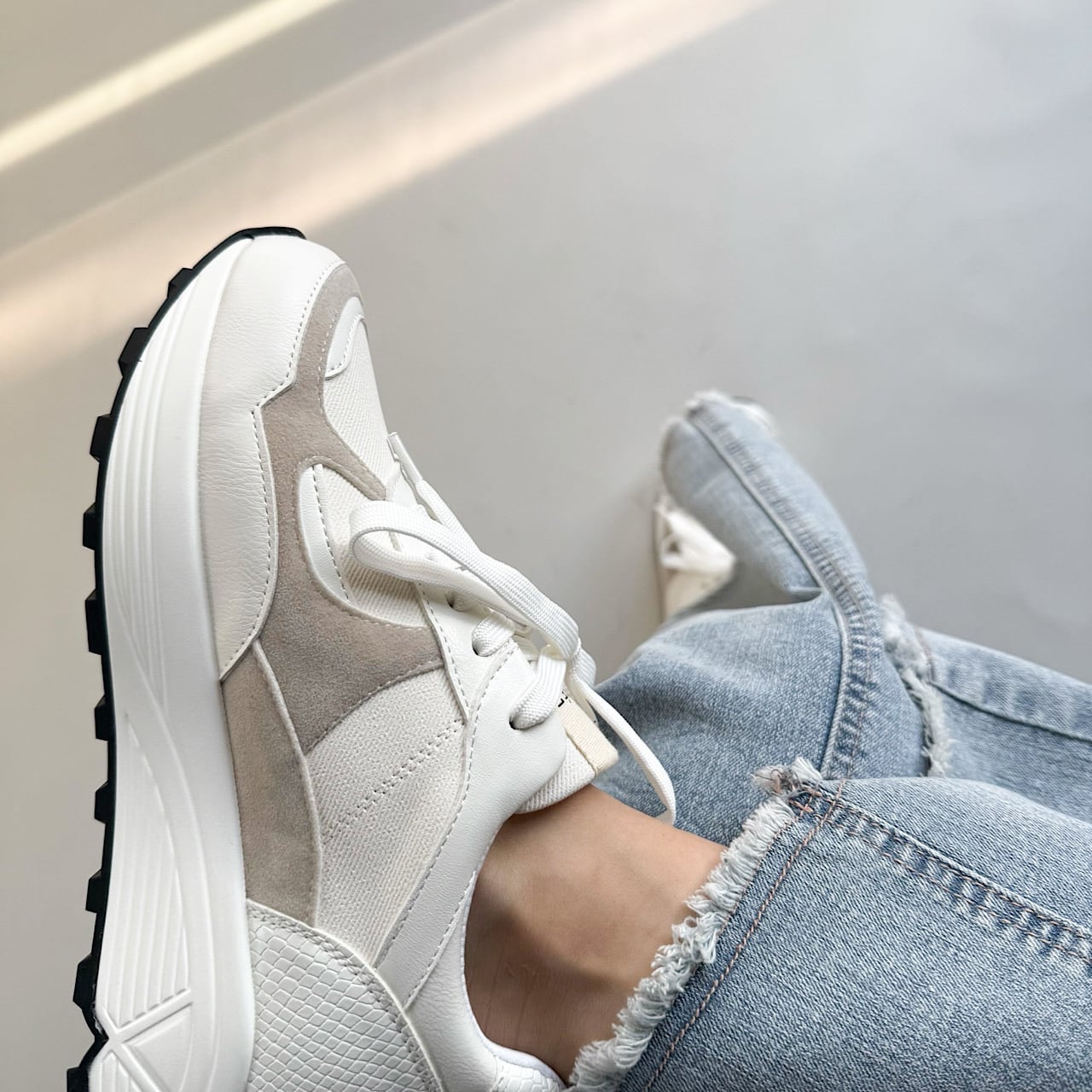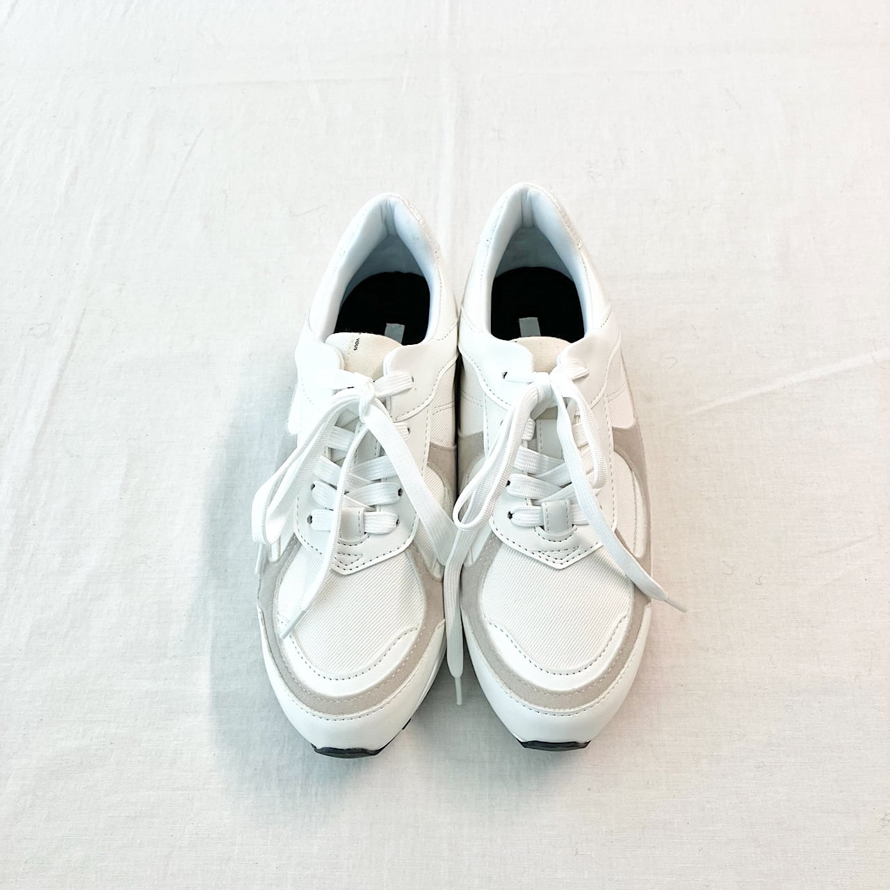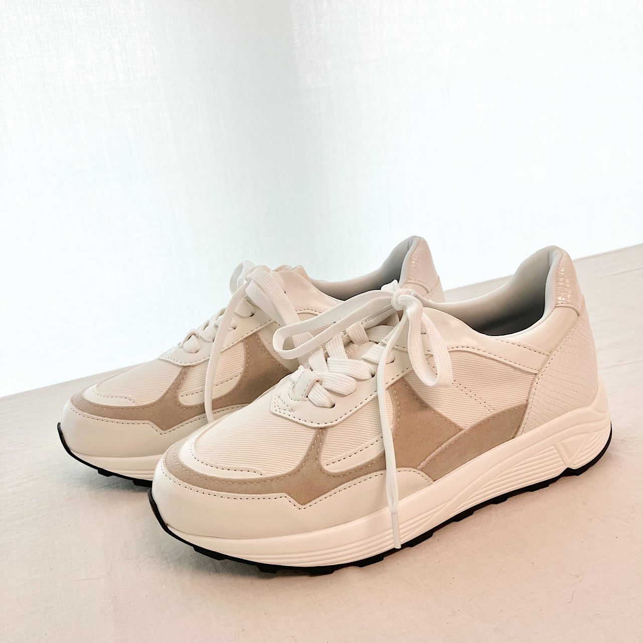異素材ミックスでスタイリッシュな3cmのヒールアップスニーカーです。