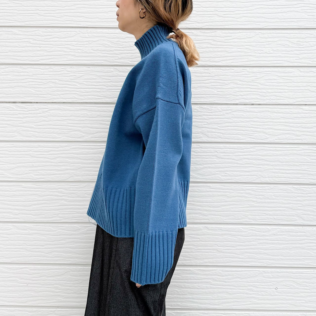 リブハイネックニット