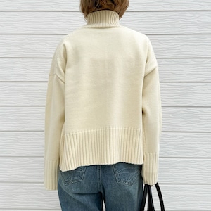 柔らかな肌触りと、シンプルで着回し力の高いデザインのハイネックニットです。