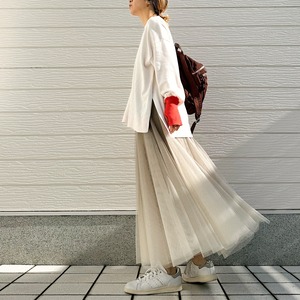 リラックス感のあるボックスシルエットなので、体形をカバーしてくれる嬉しい一着。