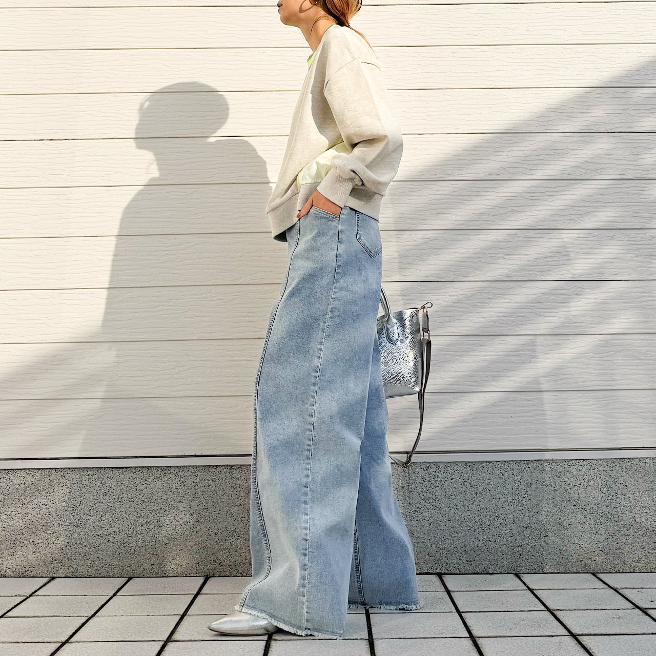 ワイドですがスッキリとしたシルエットが、どんなトップスとも好相性に着回せます。