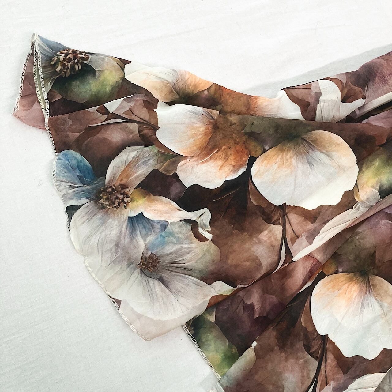 華やかさがありながらも落ち着いた配色で、大人の装いに自然と溶け込む一枚です。