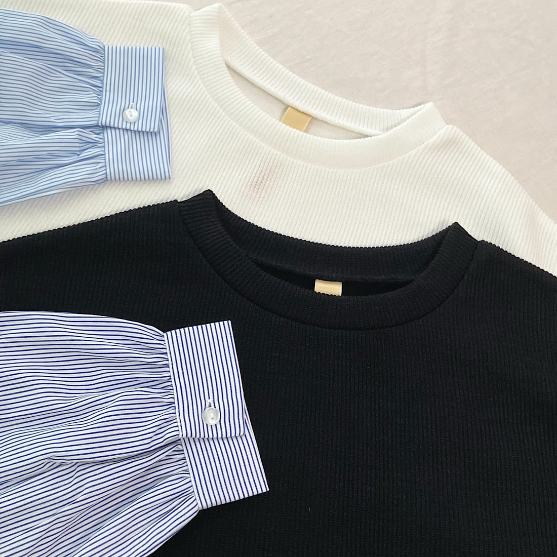 お袖がシャツに切り替わっているのでアウターが着やすいのもポイントです。