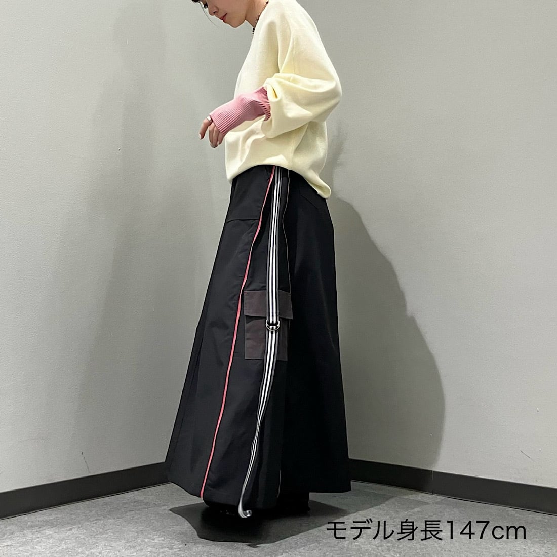 コットン、ナイロンのお素材なのでドライタッチで通年を通して履ける軽やかなスカートです。