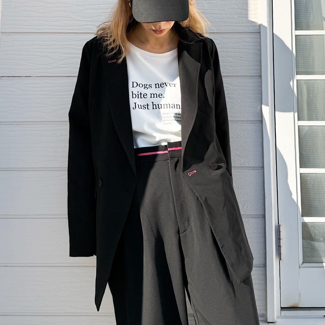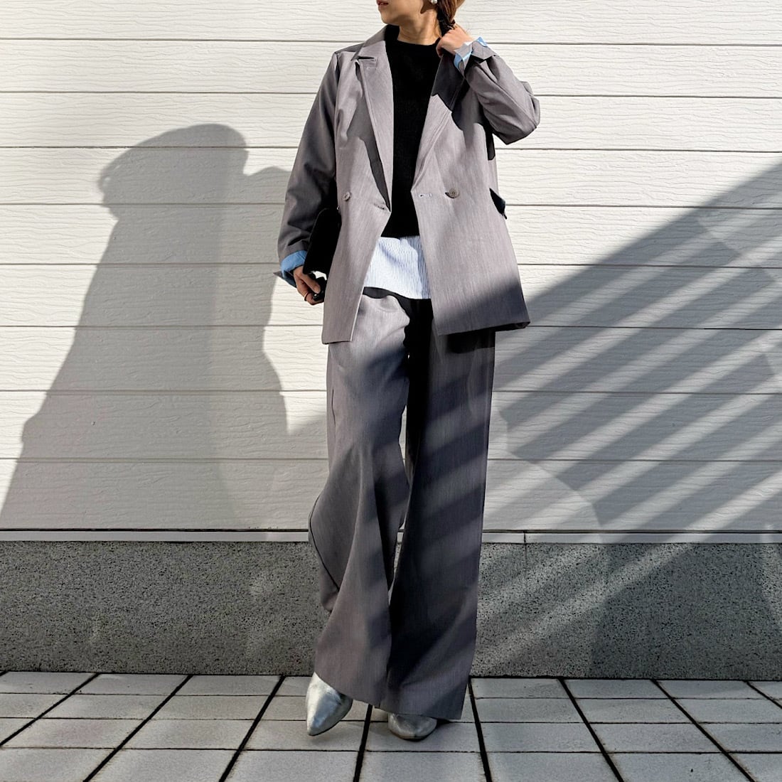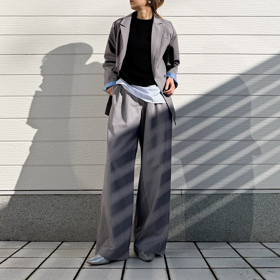 セットアップでの着用はもちろん、Tシャツやデニムと合わせたカジュアルダウンにもおすすめです。