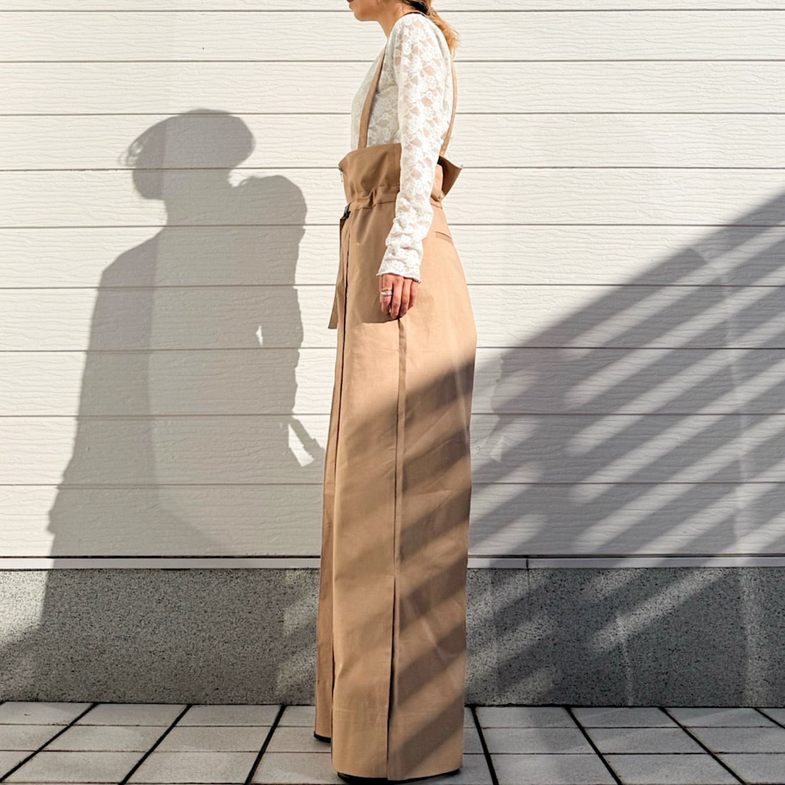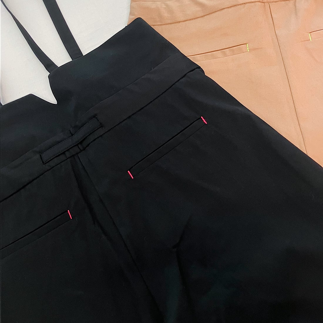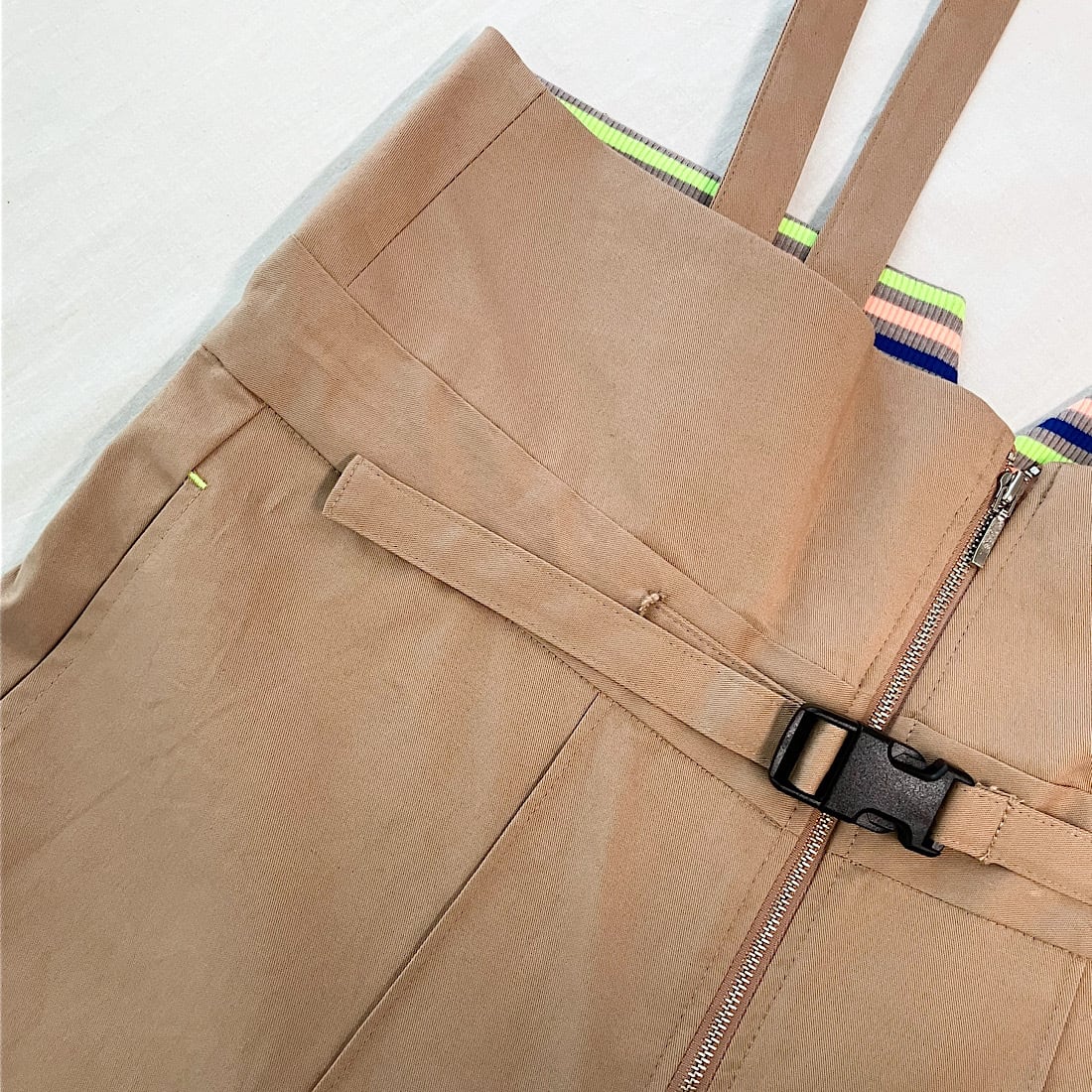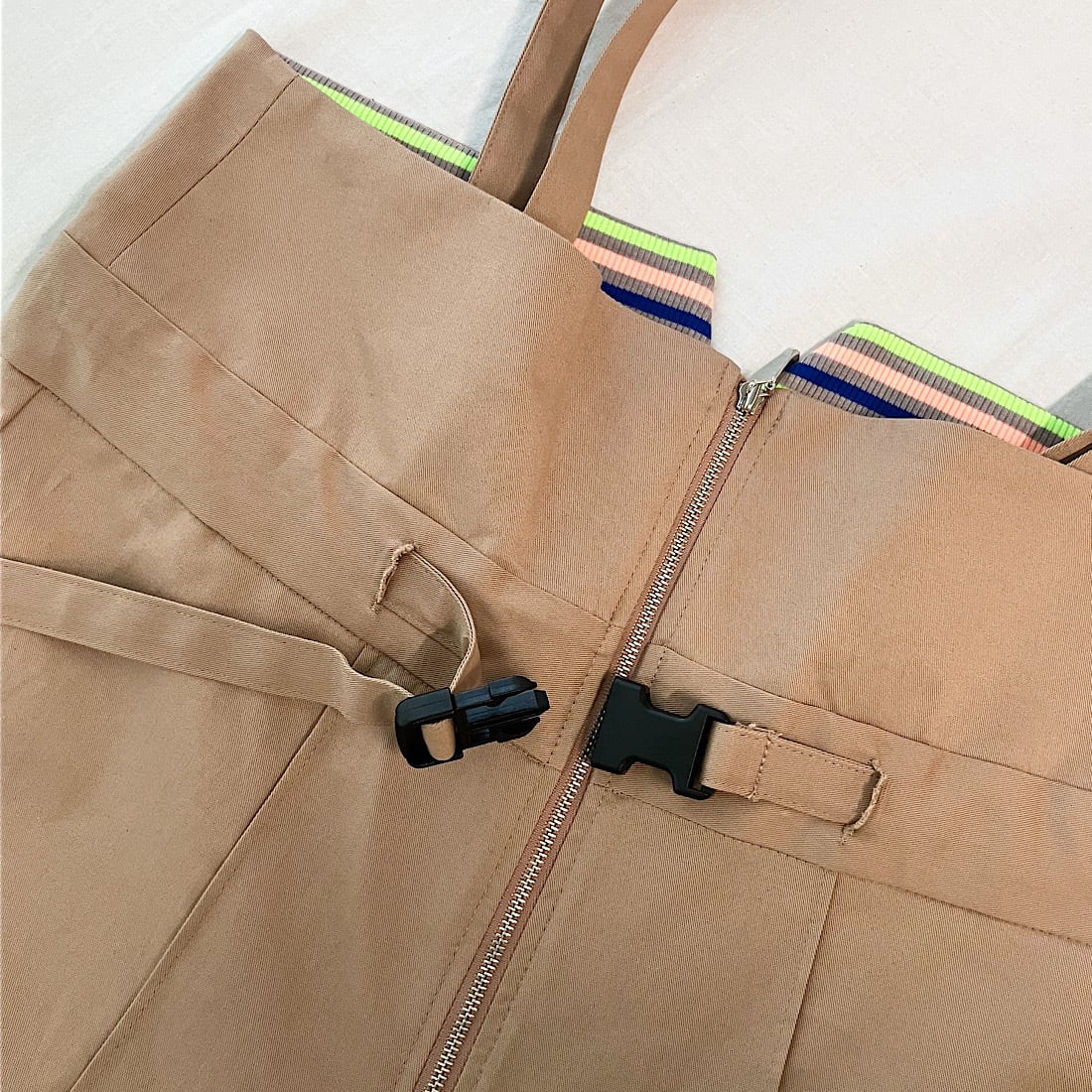 ウエストベルトを締めればサスペンダーを外しても着られる2WAY仕様となっております。